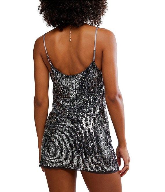 Free People Midnight Kiss Sequin Straight Neckline Sleeveless Mini Slip Dress