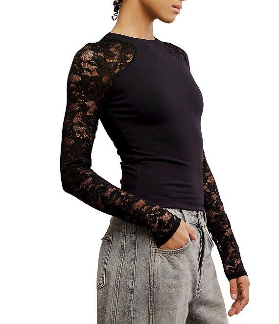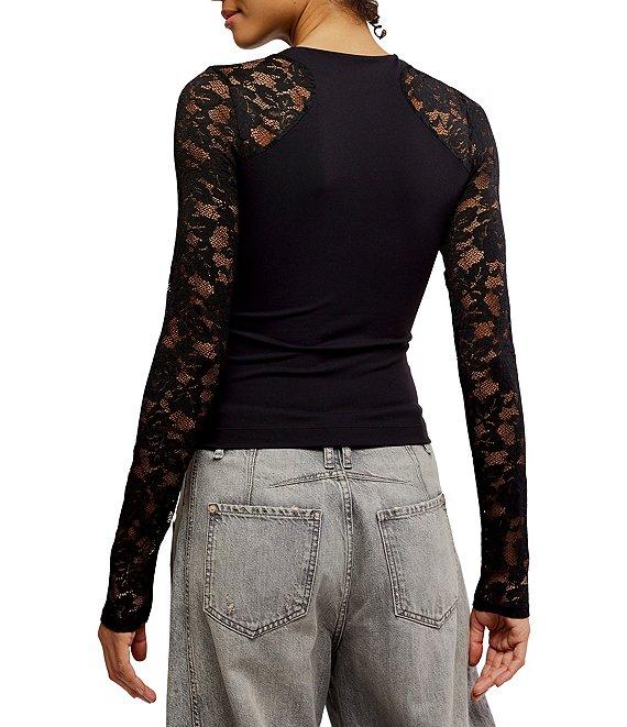 From Free People, this top features: Knit fabrication Crew neckline Fitted long sleeves Pull-on construction Straight hemline Approx. 23" length Nylon/elastane Machine wash cold Imported.