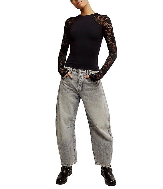Free People No Excuses Crew Neck Long Sleeve Pull On Fitted Top