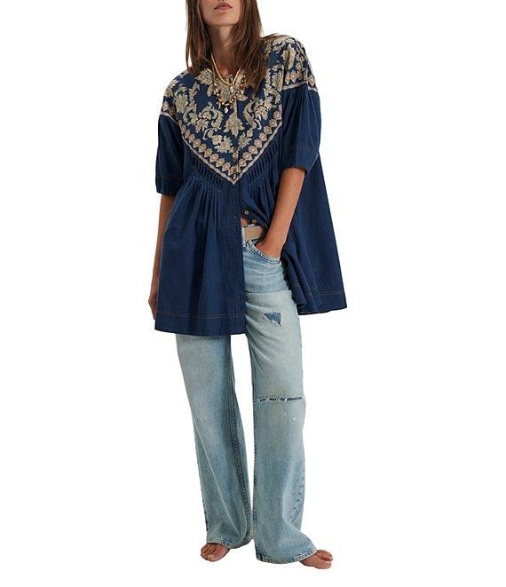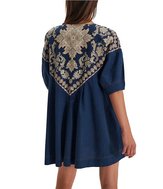Free People Orson Round Neck Short Sleeve Button Front Mini Dress