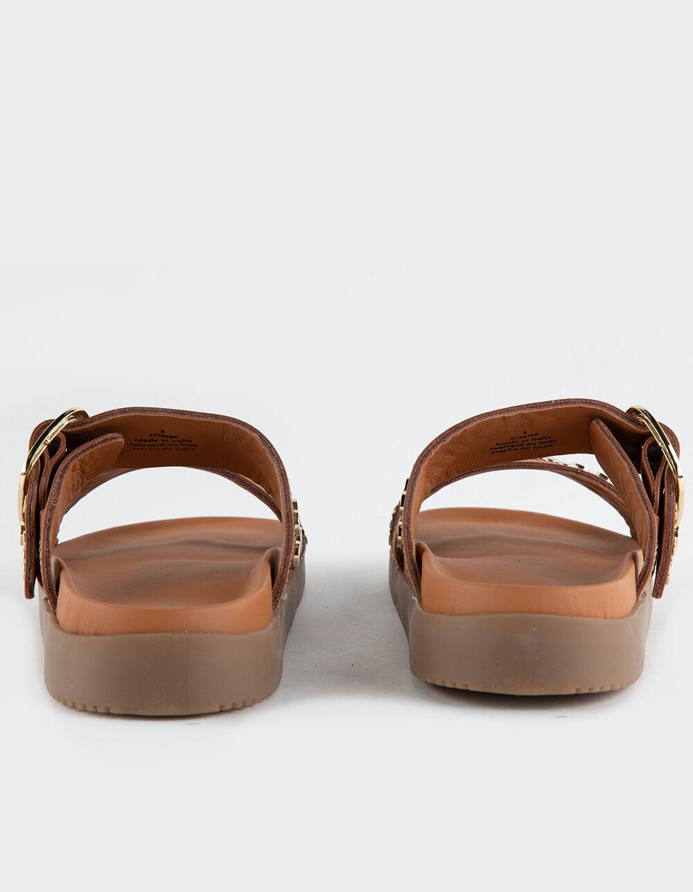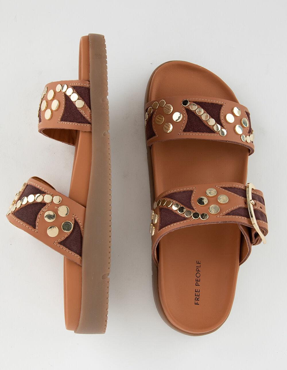 Free People Revelry Studded Sandals. Cool and casual, these easy slide sandals are featured in a classic double-strap design with studded details for an eye-catching accent. Slip-on style, backless, double leather strap design, adjustable buckle closure, molded footbed, suede and stud details, tread outsole. Imported.