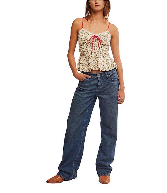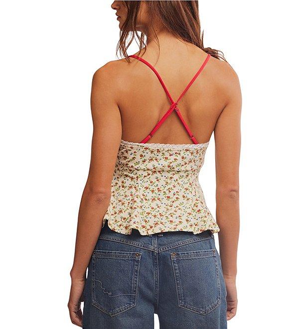 Free People Sammi Floral Print Sweetheart Neckline Sleeveless Peplum Tank