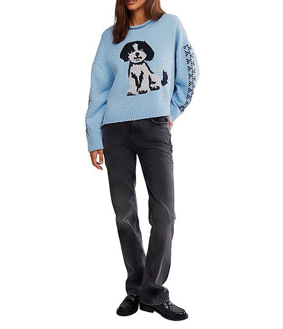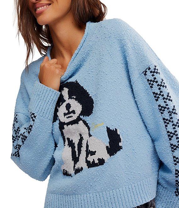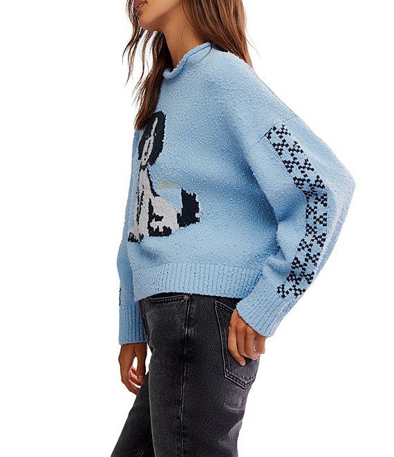 Free People Story Book Animal Printed Crew Neck Long Sleeve Sweater