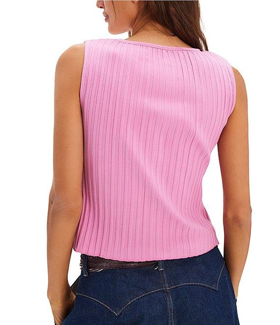 Free People Tilly Ribbed Knit Crew Neck Sleeveless Fitted Vest