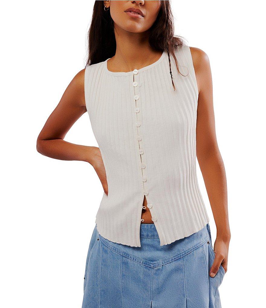 Free People Tilly Ribbed Knit Crew Neck Sleeveless Fitted Vest