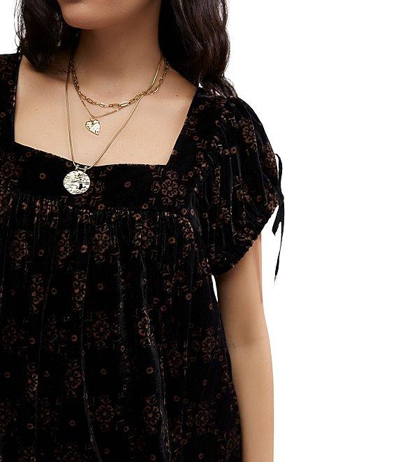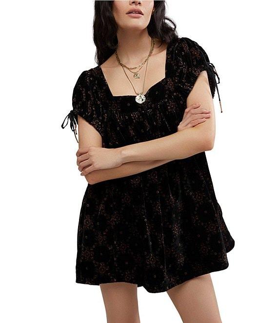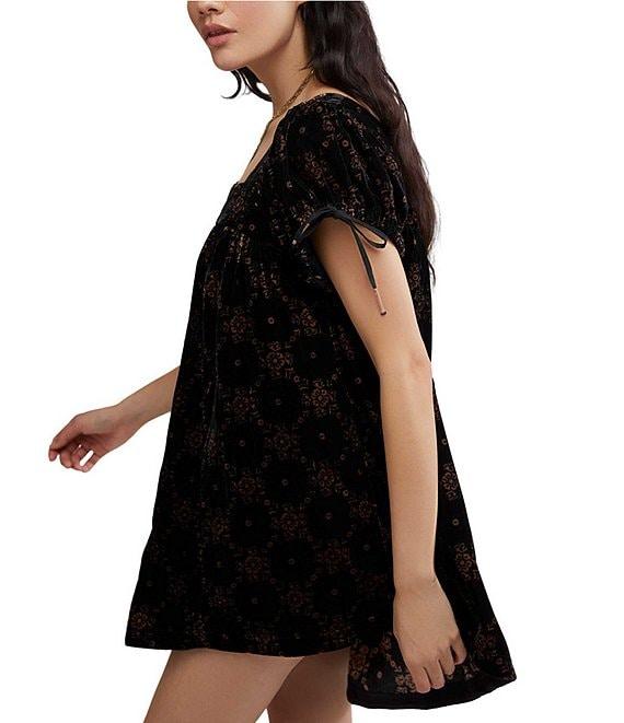 Free People Velvet Summer Camp Floral Square Neck Short Sleeve Tunic