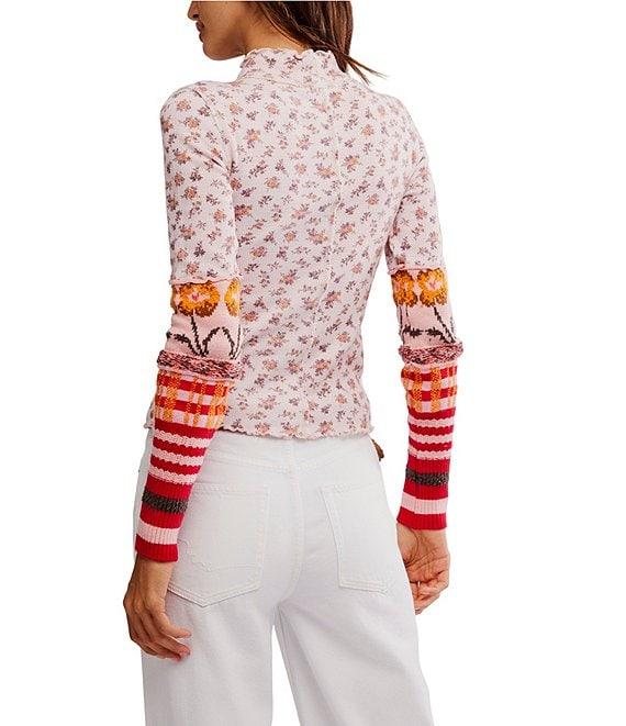 From Free People this top features: Floral printed Thermal knit fabrication Mock neckline Long sleeves Pull-on construction Fitted silhouette Knit cuffs Self: Cotton/Elastane Contrast: Cotton/Polyamide/Polyester/Elastane Hand wash cold Imported.