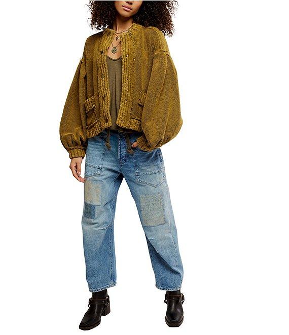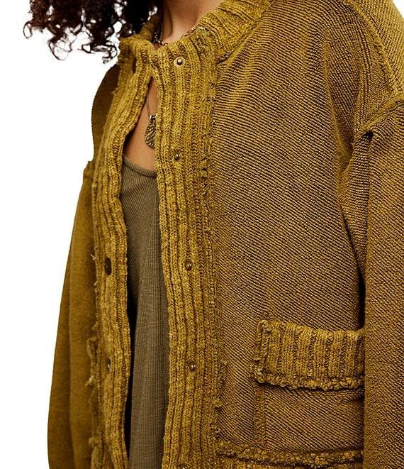 From Free People, this cardi features: Soft terry fabrication Slouchy silhouette Crew neckline Drop-shoulder sleeves with cuffs Front patch pockets Ribbed hemline Button front closure Approx. 24.5" Cotton/polyester/elastane Machine wash cold Imported.