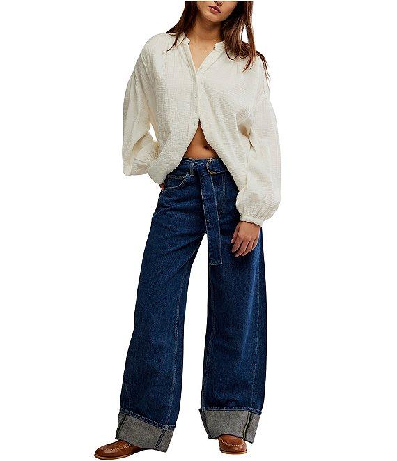 Free People We The Free East Bay Belted High Rise Cuffed Hem Jeans
