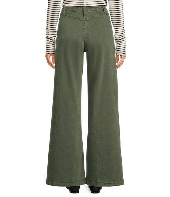 From Free People, these jeans feature: Denim fabrication High rise Wide leg silhouette Zip fly and button closure Front inverted yoke seam Approx. 32" inseam, 12.5" rise Polyester/elastane/cotton Machine washable Imported.