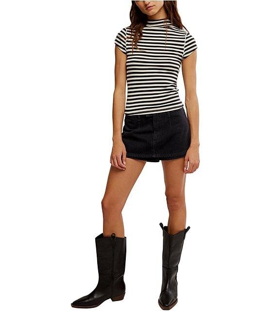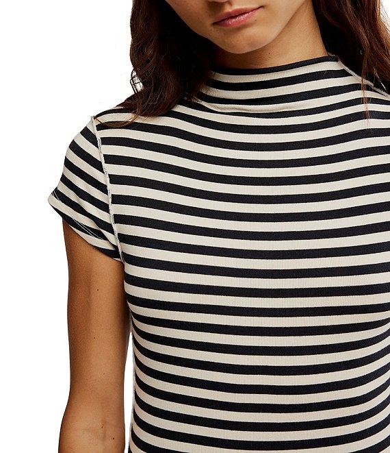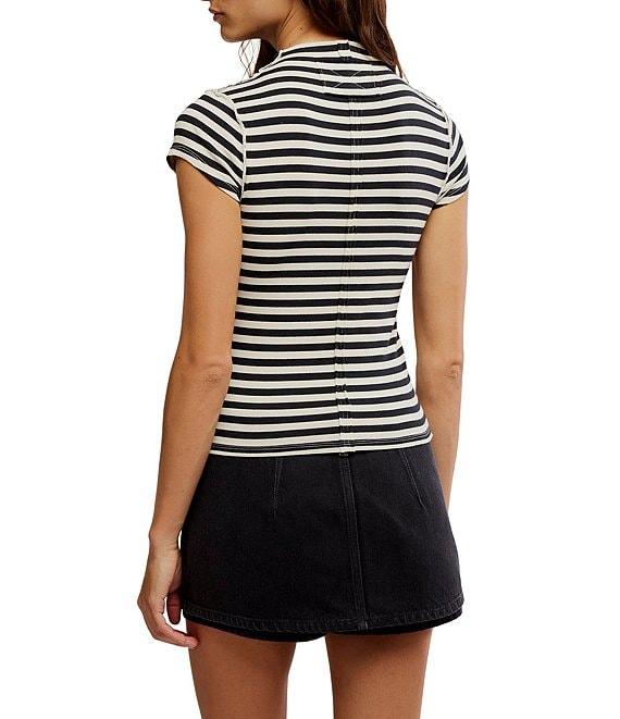 Free People We the Free Lola Stripe Print Mock Neck Short Sleeve Tee