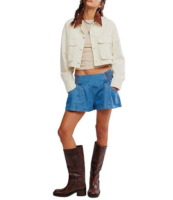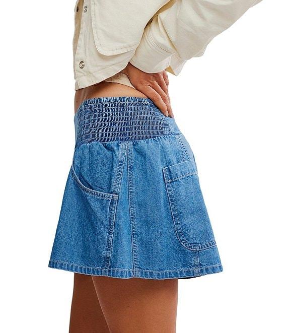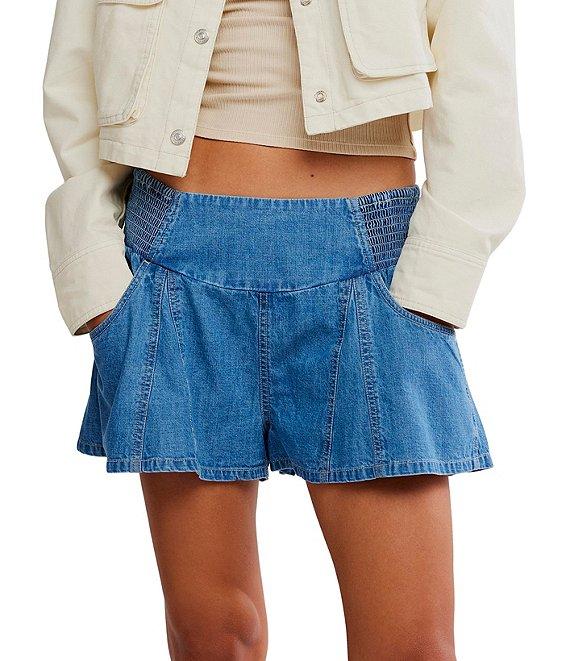 From Free People, these shorts feature: Chambray denim fabrication Low-rise waistline Smocked side panels at waist Pull-on construction Side pockets Approx. 2.25" inseam, 11.75" rise Cotton Machine wash Imported.