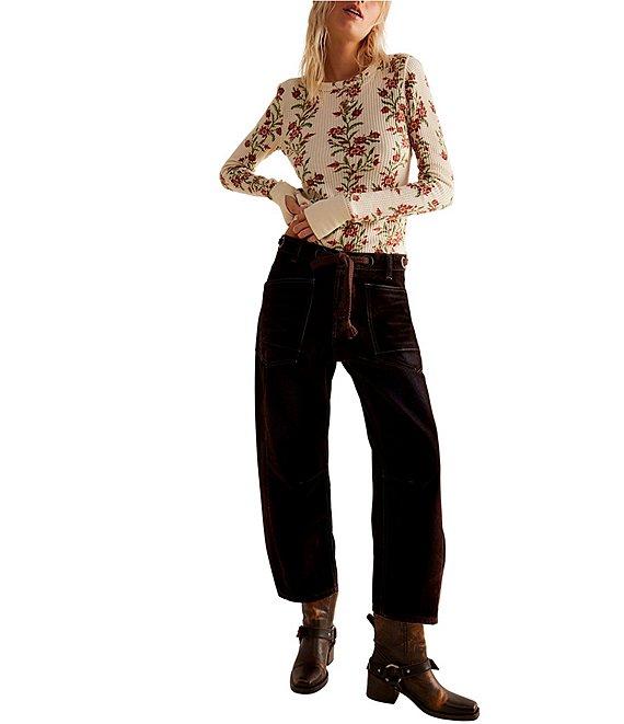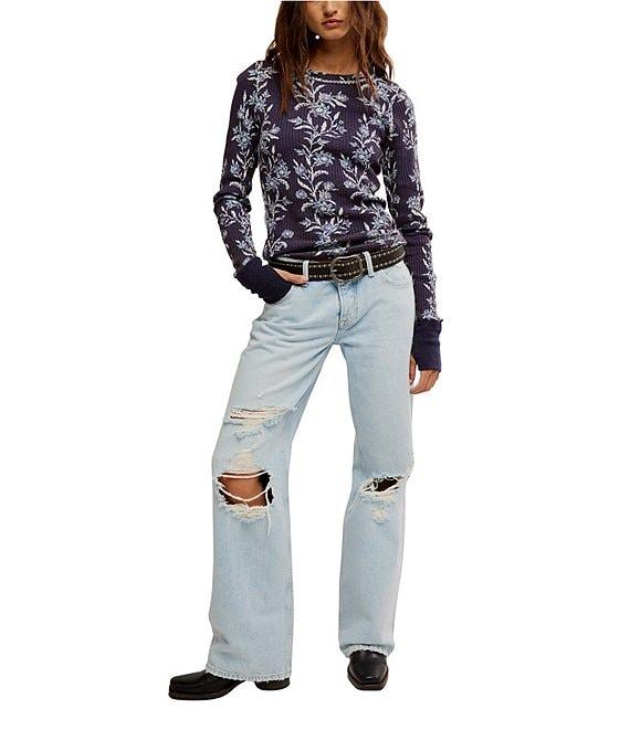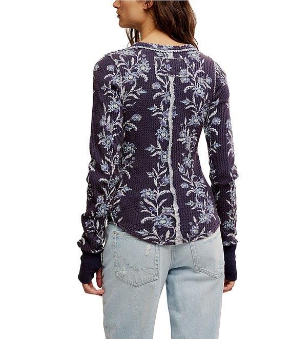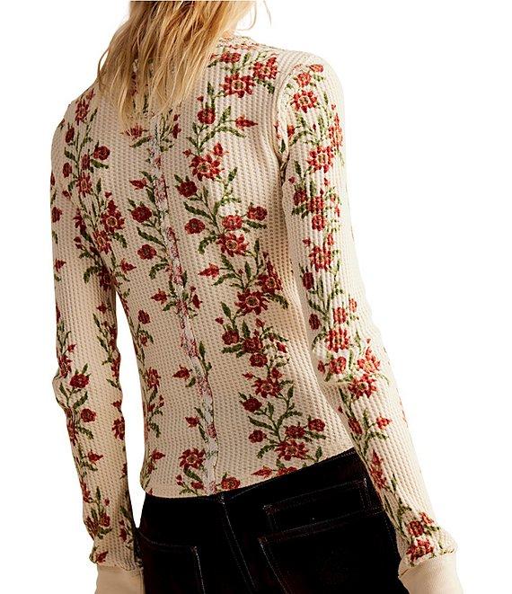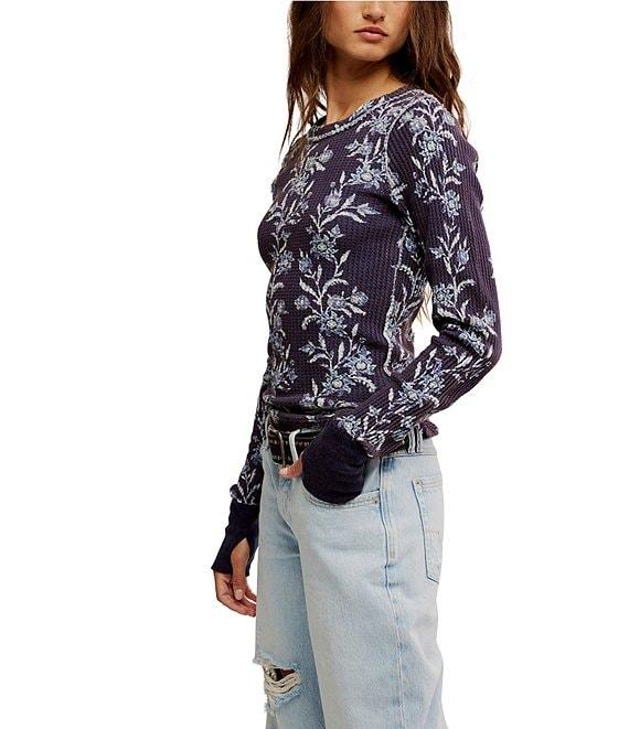 Free People We The Free Pretty Little Thermal Floral Printed Crew Neck Long Sleeve Fitted Top