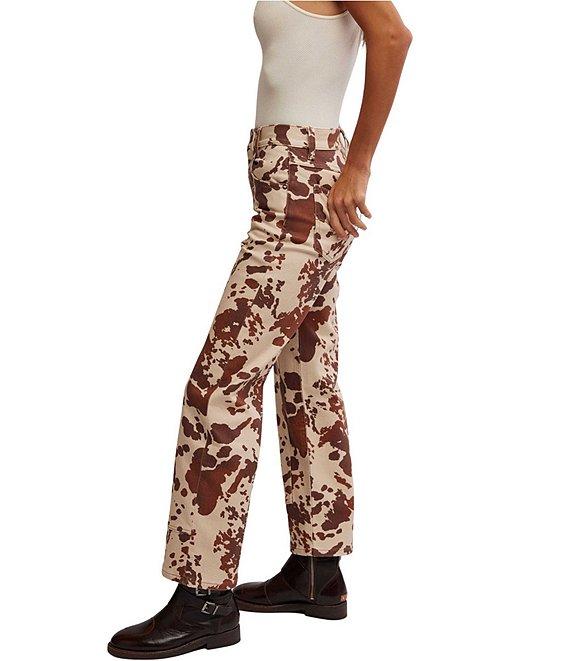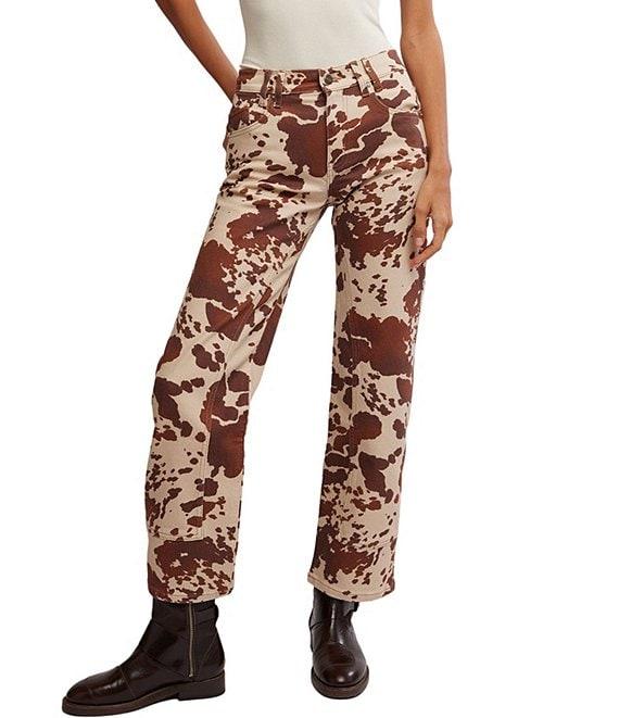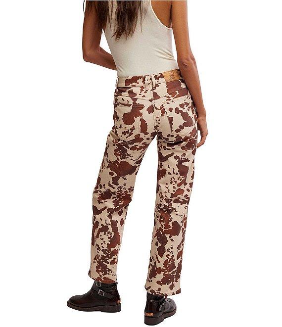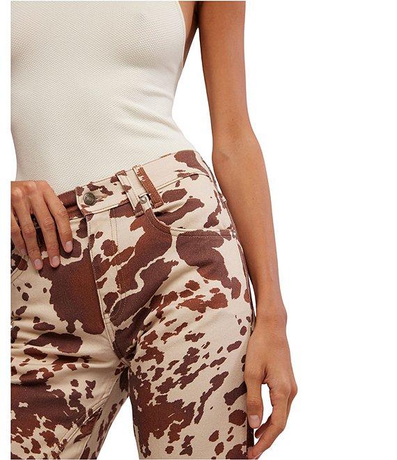Free People We the Free Risk Taker Printed Cow Mid Rise Straight Leg Jeans