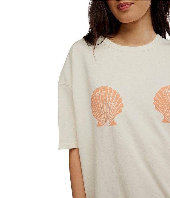 Free People We The Free Shell Graphic Print Crew Neck Short Sleeve Oversize Boxy Tee