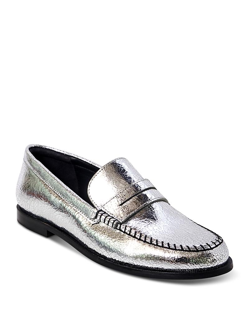 Free People Womens Blanket Stitch Loafers.Color:Pale Pewter.Size:7.Material:Leather upper and lining, rubber sole.