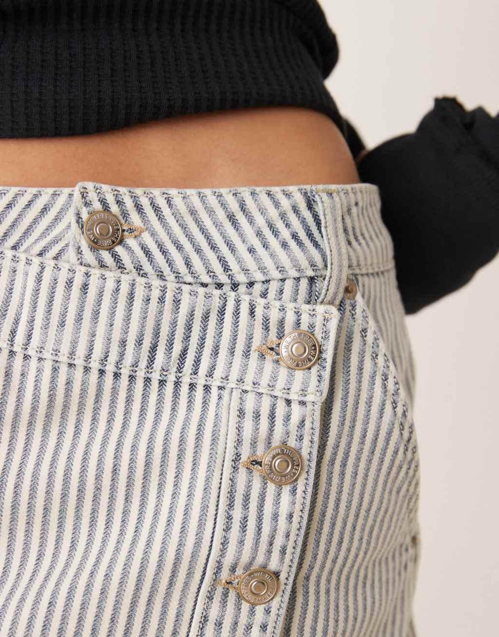 Free People Wynee asymmetric striped denim skirt in light blue
