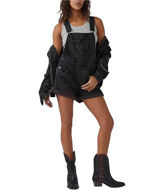 Free People Ziggy Square Neck Sleeveless Frayed Cuffed Hem Shortall Overalls