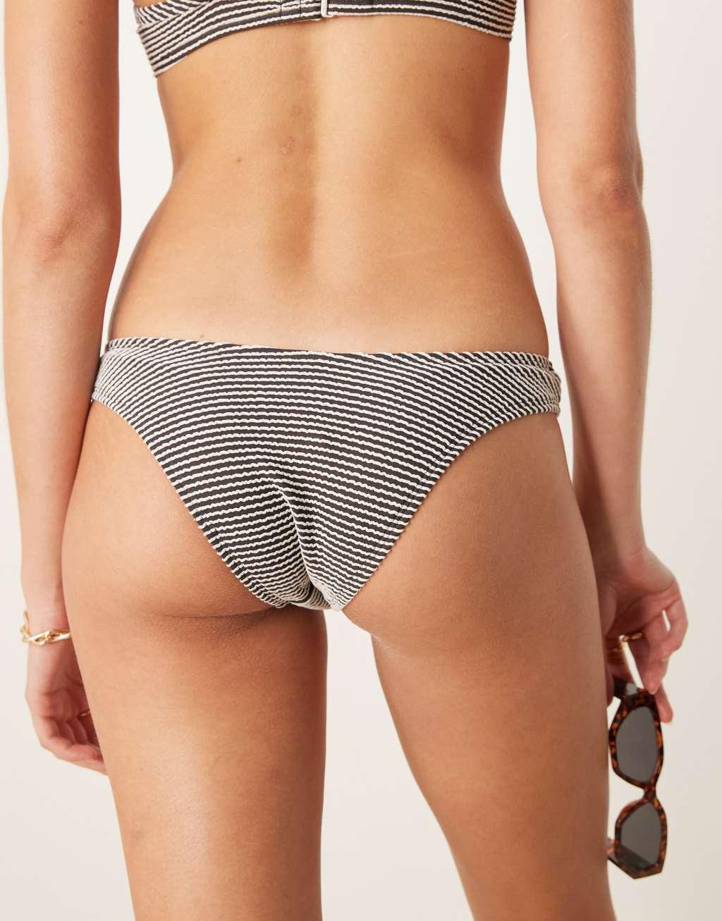 Free Society crinkle stripe high leg bikini bottom in black and white