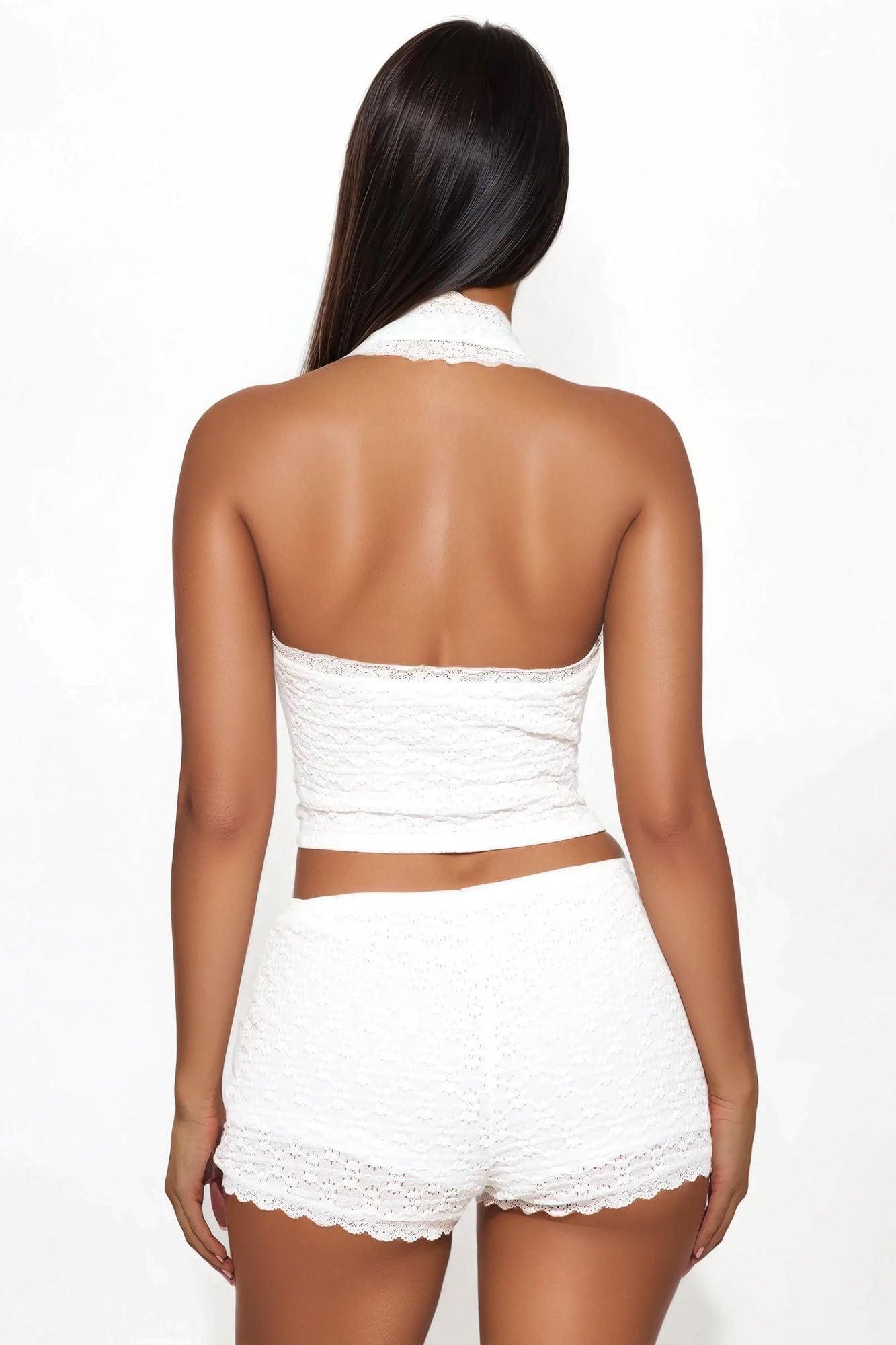 Sugar Dreams Lace Halter Micro Short Set - White Female