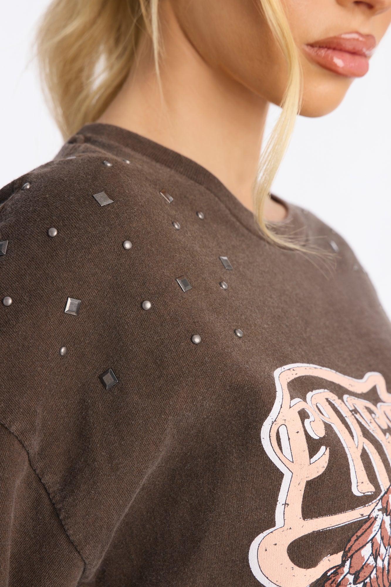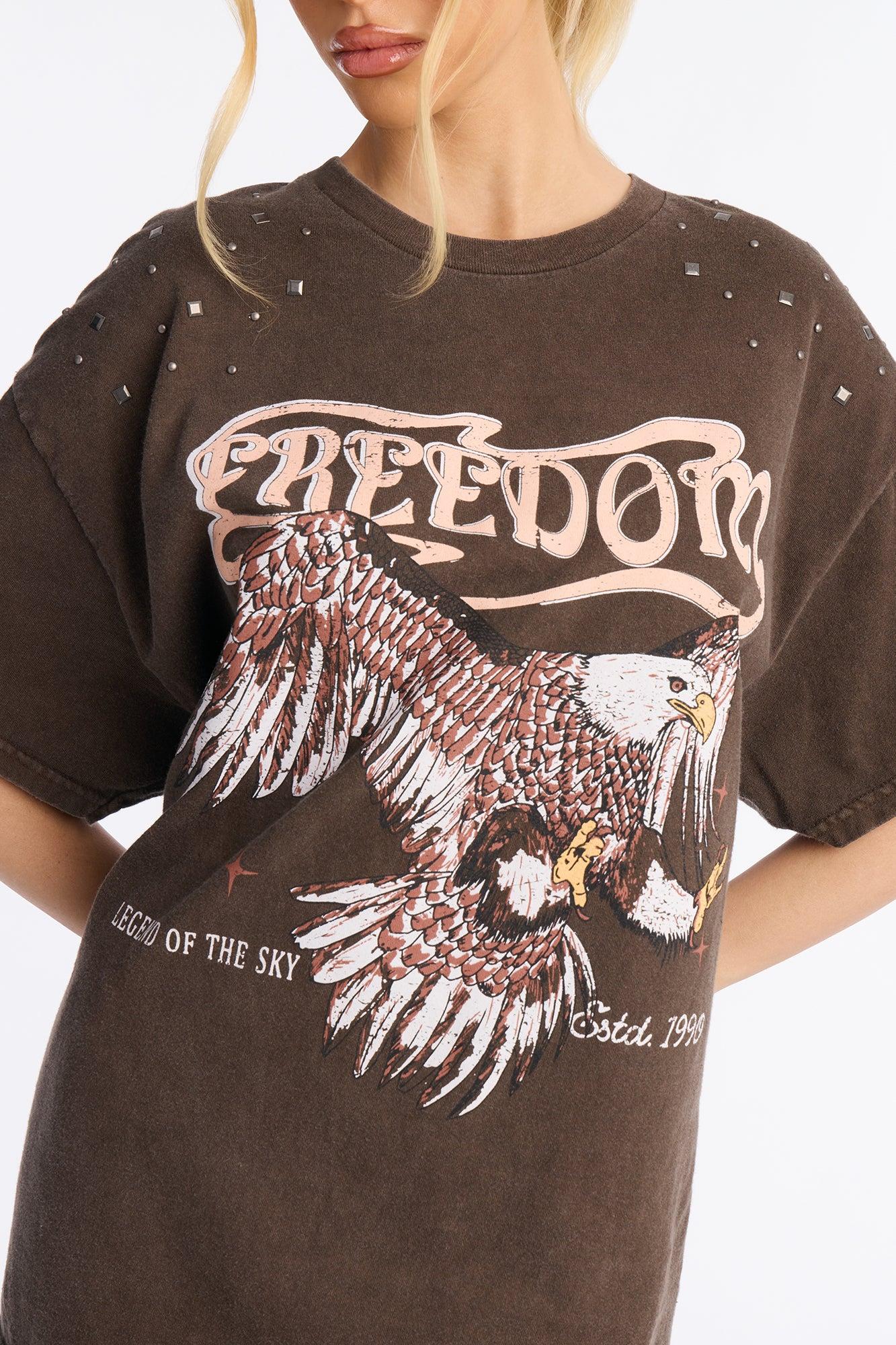 Freedom Eagle Washed Embellished Tee - Chocolate Female