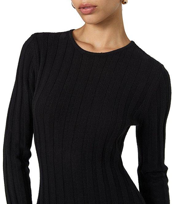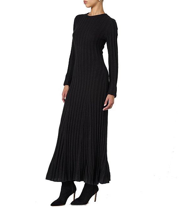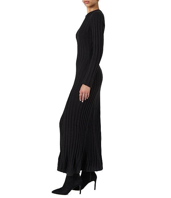 French Connection Babysoft Rib Knit Crew Neck Long Sleeve Fit and Flare Maxi Dress