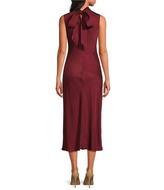 French Connection Ennis Satin Mock Neck Sleeveless Bow Satin Midi Dress