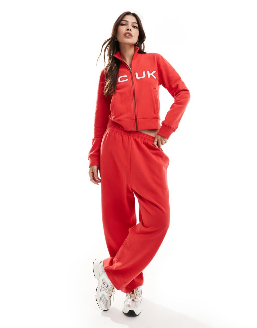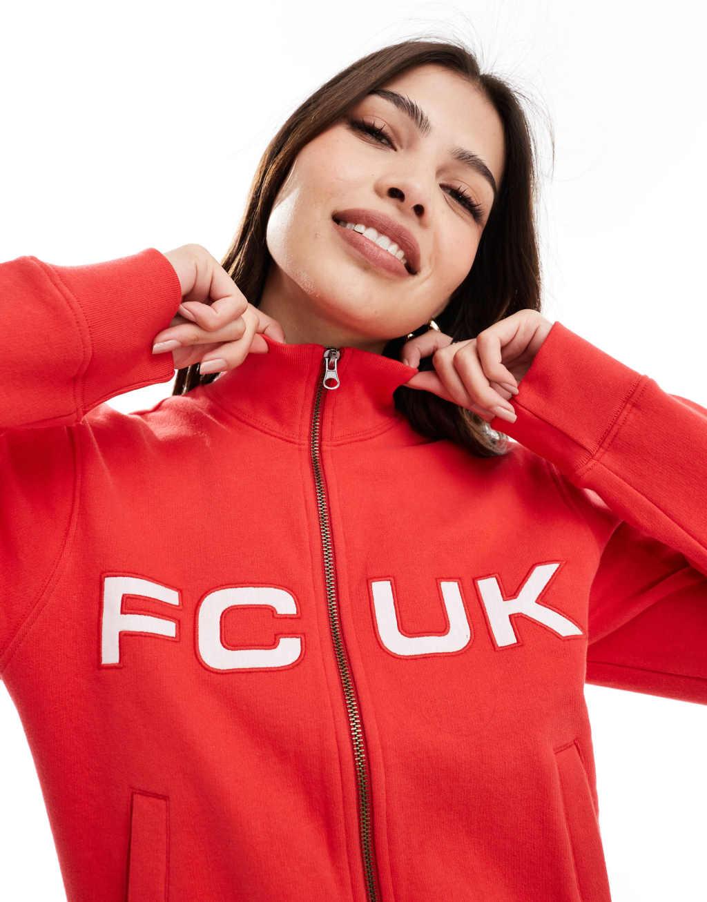 French Connection FCUK zip through sweater in red