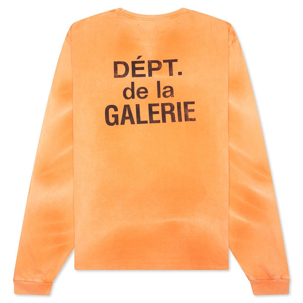 Gallery Dept.'s French L/S Tee is a vintage-inspired essential with a lived-in feel. Made from 100% cotton, the long-sleeve tee features a boxy, relaxed fit that hits just above the belt line. The signature FRENCH logo is printed on the chest, while intentional distressing, small holes, and imperfections give each piece a one-of-a-kind finish. Crafted using eco-friendly methods and finished with a custom wash in Los Angeles, CA. 100% Cotton Boxy fit FRENCH logo Vintage wash Made in Los Angeles Crew neckline Ribbed trims Woven label tag Style No: FLS-60056-BORG FLS 60056 BRIG