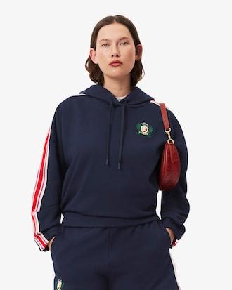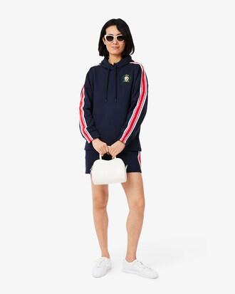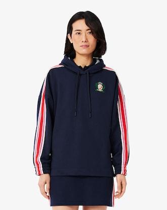 Fashion meets sportswear in this hoodie, made in the historic Lacoste workshops in Troyes, France. Featuring an oversized cut, an embroidered shield, and contrast mesh side stripes, for a preppy look that blends tradition with modernity.