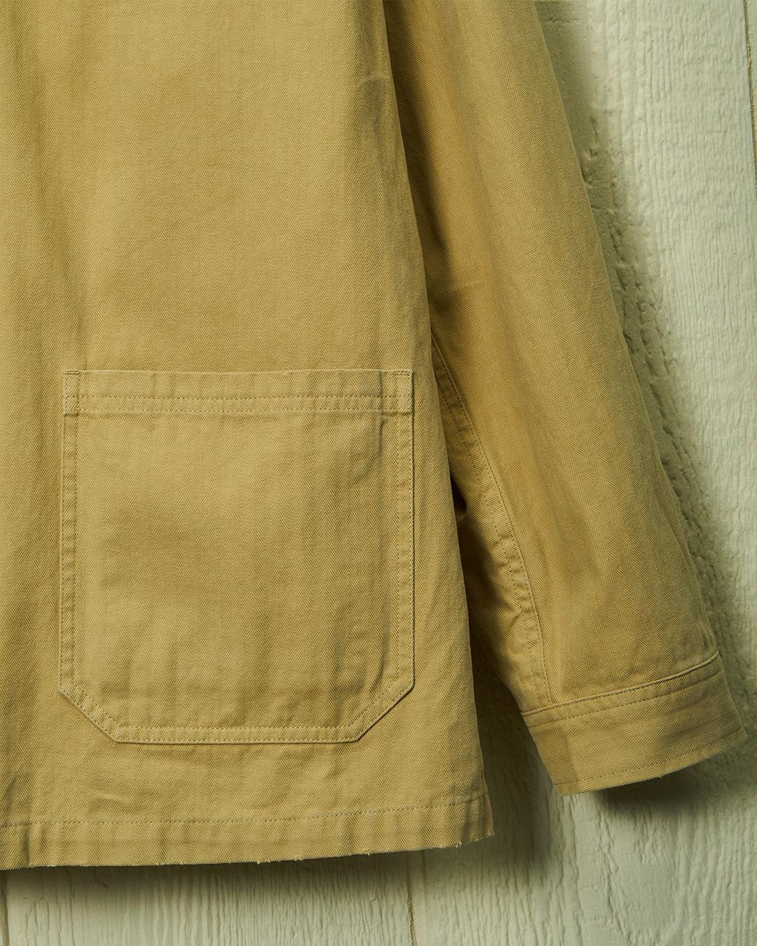 We updated our best selling French Workman's Jacket in a colorful range of herringbone twills. The traditional workman’s jacket was designed in the late 1800s as a practical, protective layer for the French working class to wear over their clothes, complete with numerous patch pockets to hold tools and spare parts. We designed our workman’s jacket to serve as a piece of outerwear, as well as a stand-in for a sports-jacket in a pinch. This garment features three exterior patch pockets and one interior hidden pocket, as well as a herringbone-taped front placket with anchor-engraved buttons. The cuffs have buttons so they can be rolled up for a day's work or if the temperature calls for it. Lightweight and versatile, wear it on to protect against a chilly sea breeze or over a button down as a casual alternative to a sports jacket on date night.