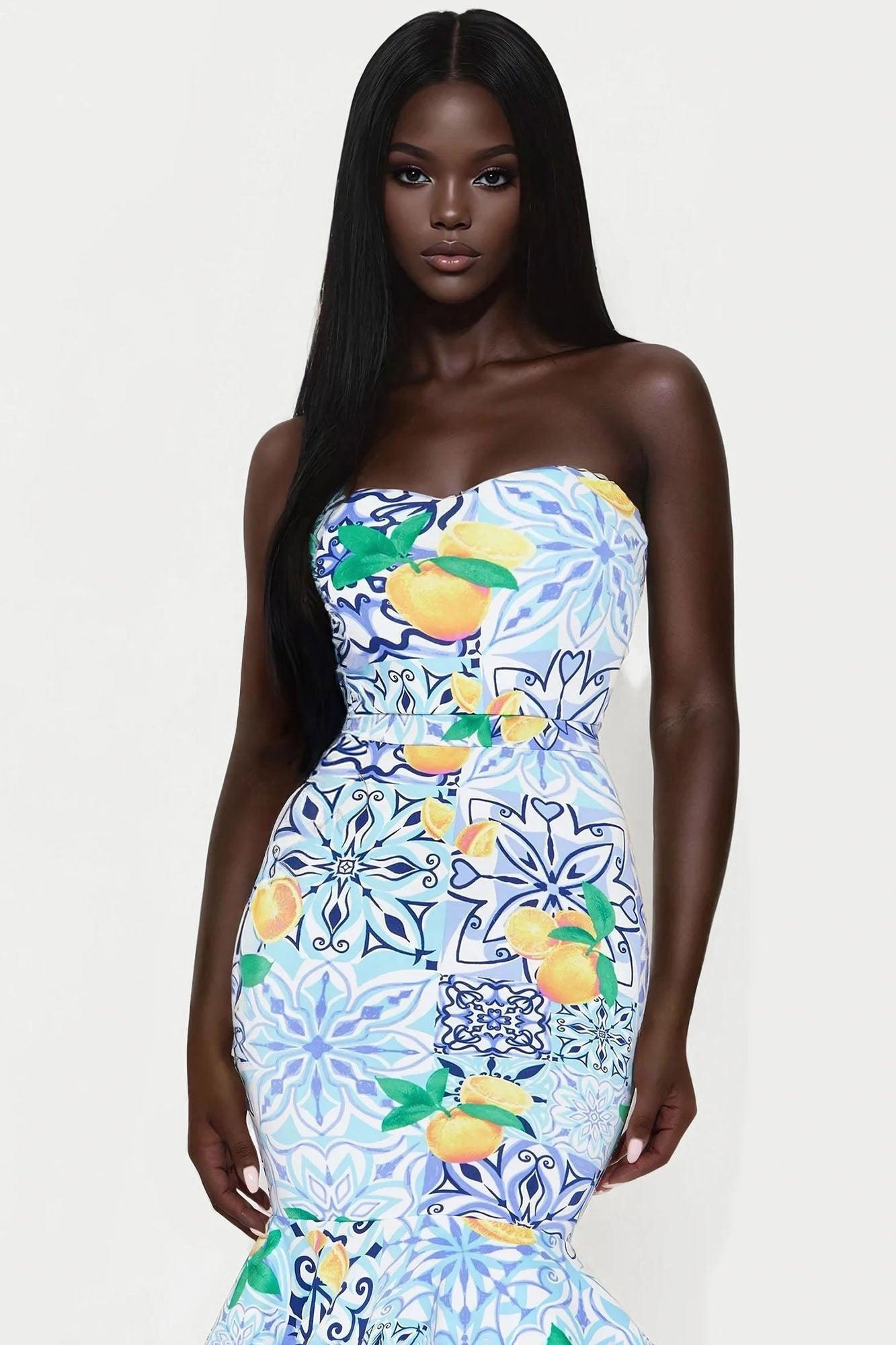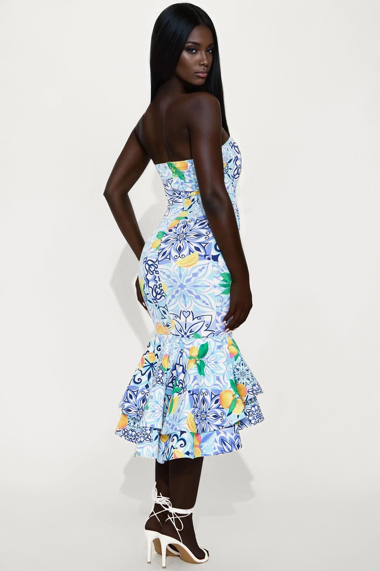 Fresh Spritz Strapless Midi Dress - Blue/combo Female