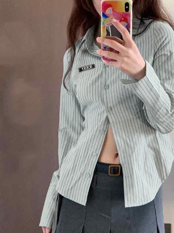 Fresh Stripe Print Slim Long Sleeve Shirt