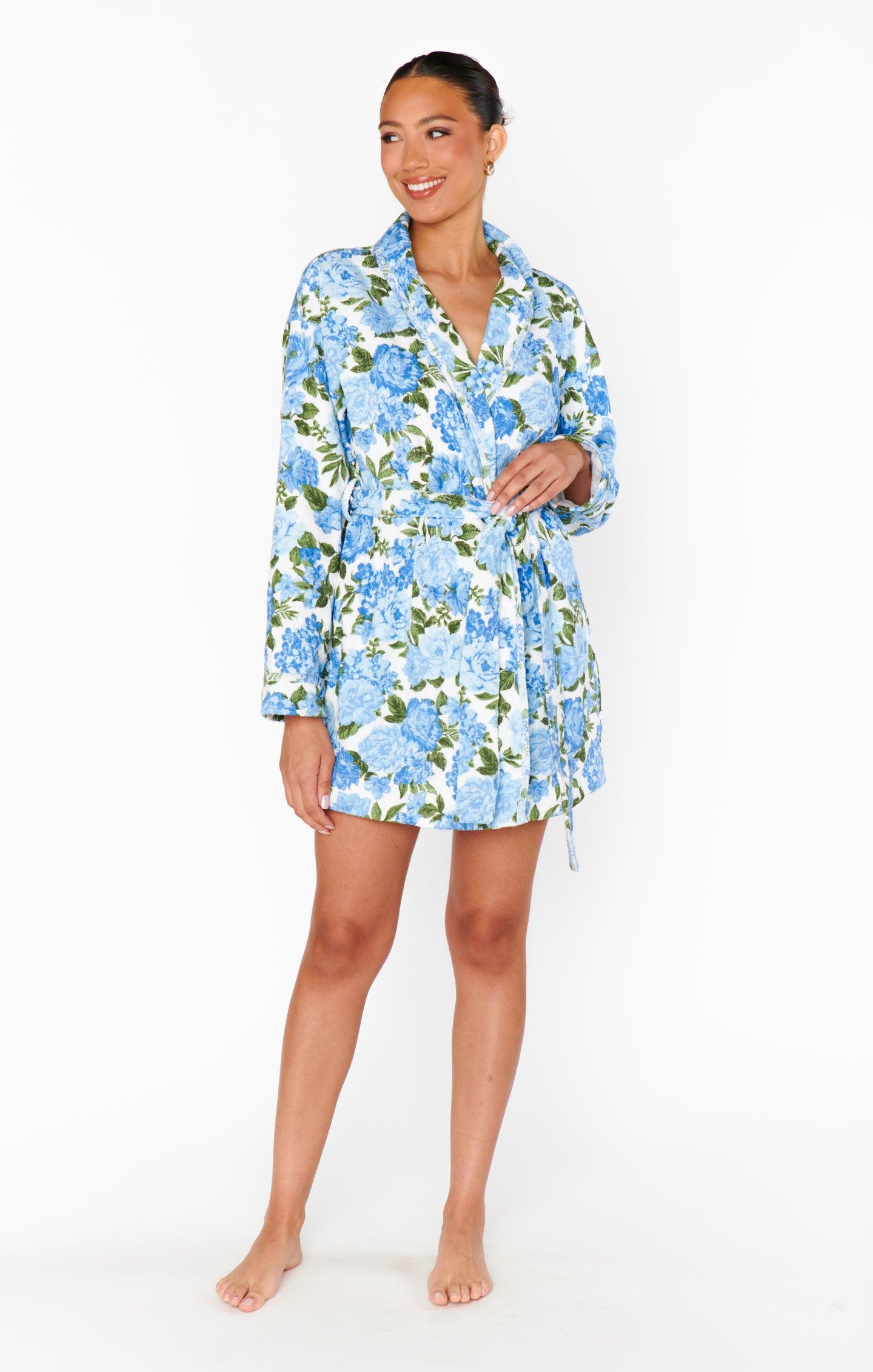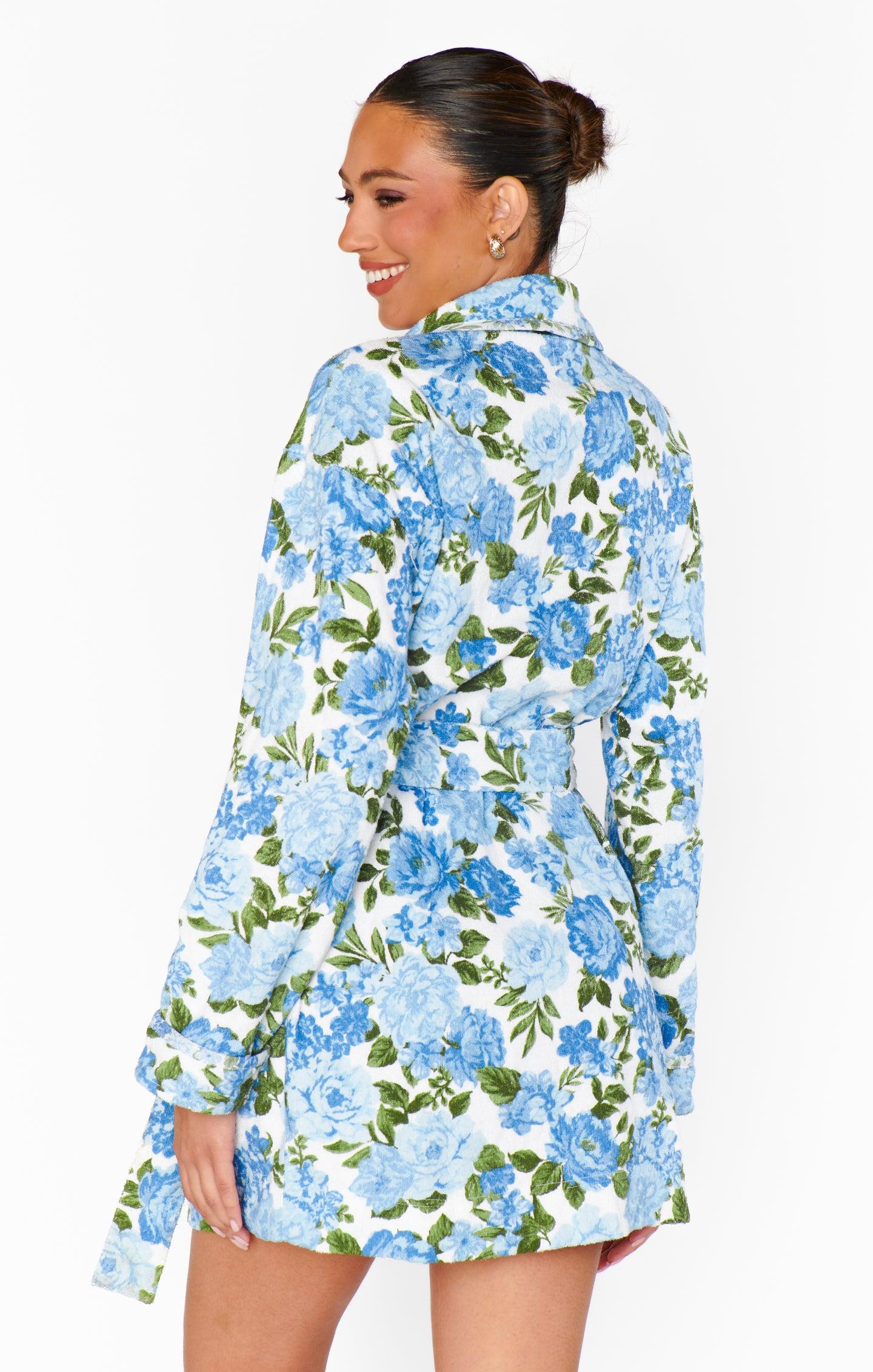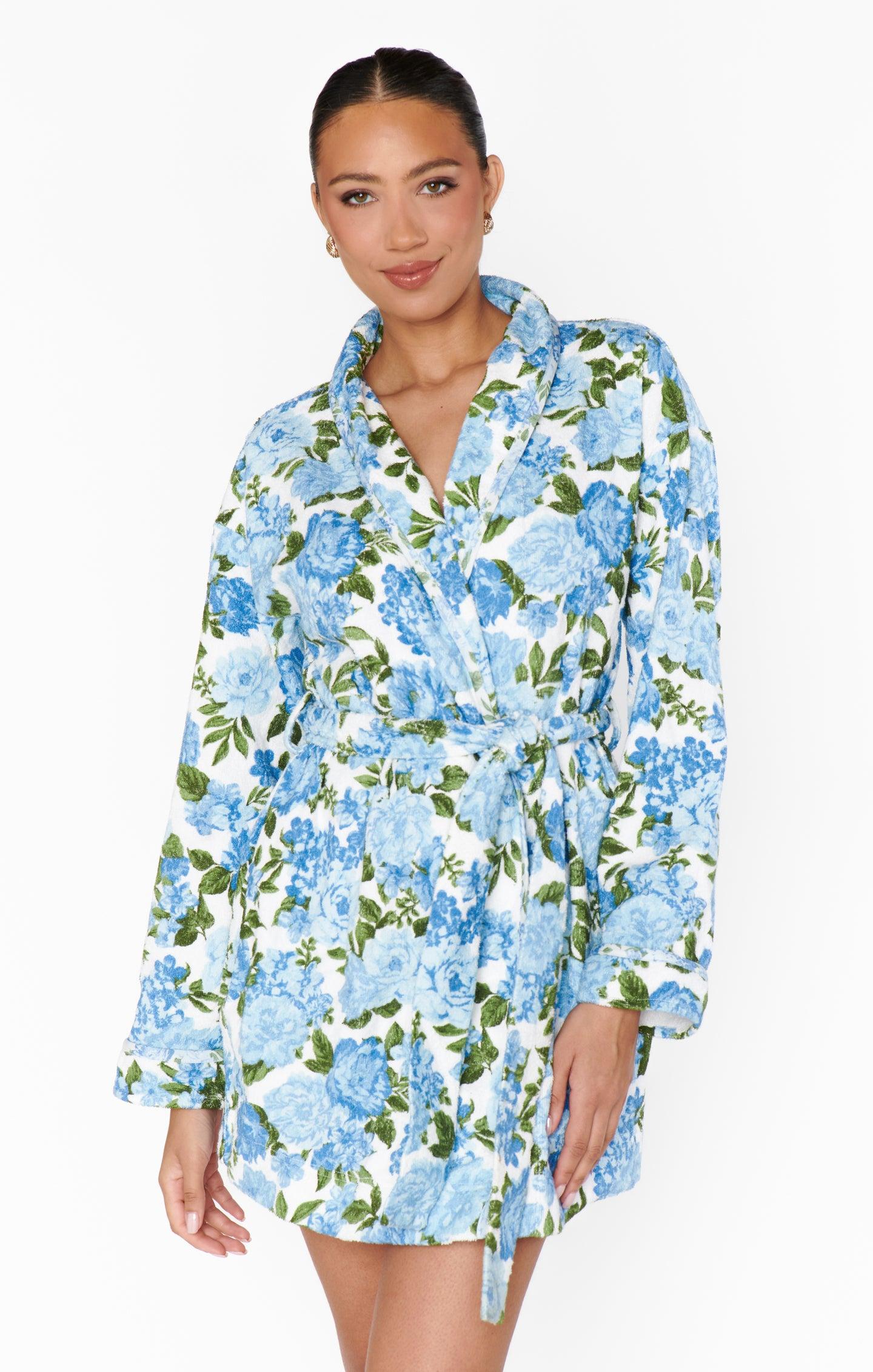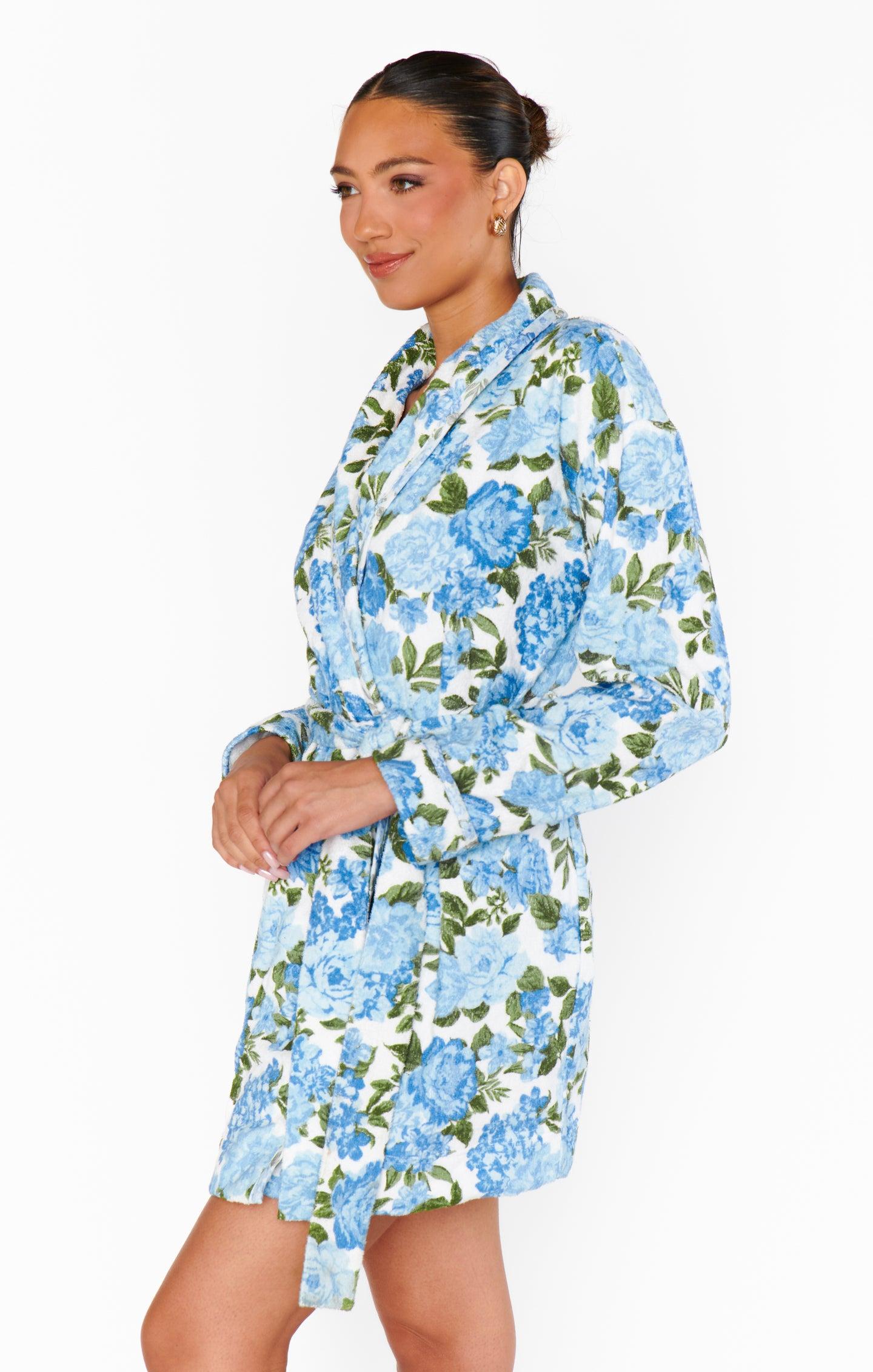 Freshen Up Robe ~ Cottage Floral Blue Terry