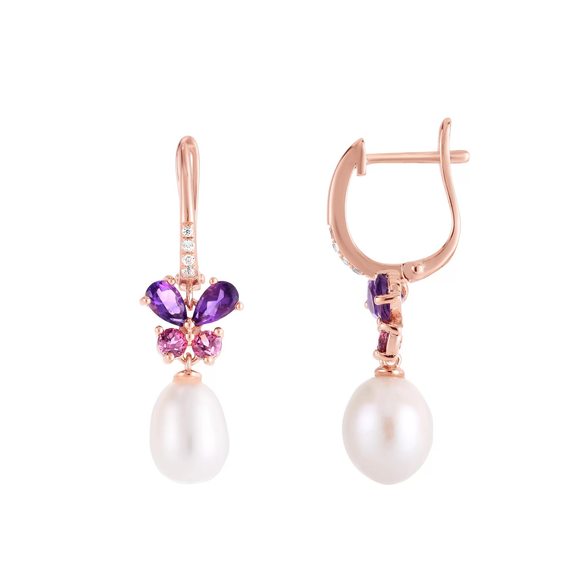 Designed with lustrous freshwater cultured pearls and dazzling gemstone butterflies, these drop earrings elevate your style. Designed with lustrous freshwater cultured pearls and dazzling gemstone butterflies, these drop earrings elevate your style. Length: 30 in. Backings: click-it Metal: sterling silver Plating: rose gold tone Finish: polished Packaging: boxedSTONE DETAILS Stone type: amethyst, rhodolite garnet Total weight: 1/5 ct. Center stone size: 8 mm x 6 mm Setting: prongCULTURED PEARL DETAILS Type: freshwater Size: 8 mm x 6 mm Shape: drop Color: white Gemstones may have been treated to enhance their appearance. Special care may be required. Please visit our Gemstone Treatment & Special Care Guide for more information. Please note, due to the high value of this item, a signature may be required upon delivery. Gender: female. Age Group: adult. Material: Gold Over Sterling.