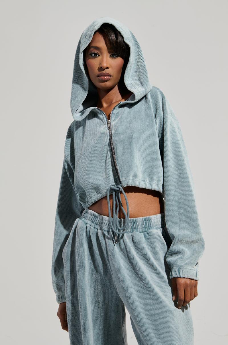 Cute n’ casual has never been easier than in The AKIRA Label Freya Zip Up Sweatshirt. This cozy piece is crafted from a stretchy, ribbed knit cotton blend base and features an attached hood, long sleeves with cinched cuffs, and a tonal drawstring closure at the waistband. Complete with tonal stitching, a faux silver metallic front zip closure, and a boxy, cropped silhouette. Pair with the matching AKIRA Label Freya Sweatpants and fur booties for a finished ensemble. - 67% Cotton 30% Polyester 3% Spandex- Hand Wash Cold- Stretchy- Imported (all measurements approximate from size small)- 12” Shoulder to Hem- 21” Sleeves- 21” Shoulder to ShoulderProduct ID: 436123 (all measurements approximate from size 1X)- 14” Shoulder to Hem- 23” Sleeves- 23” Shoulder to ShoulderProduct ID: 436127