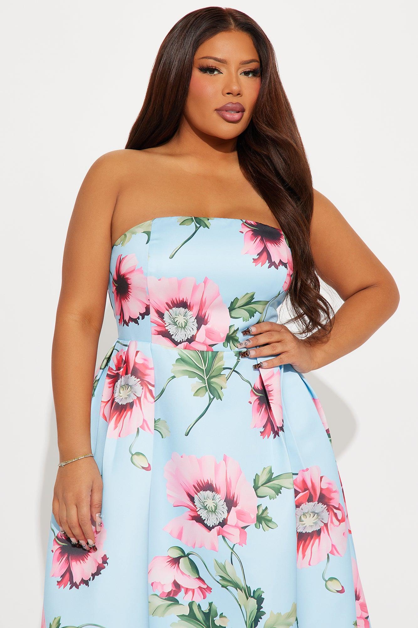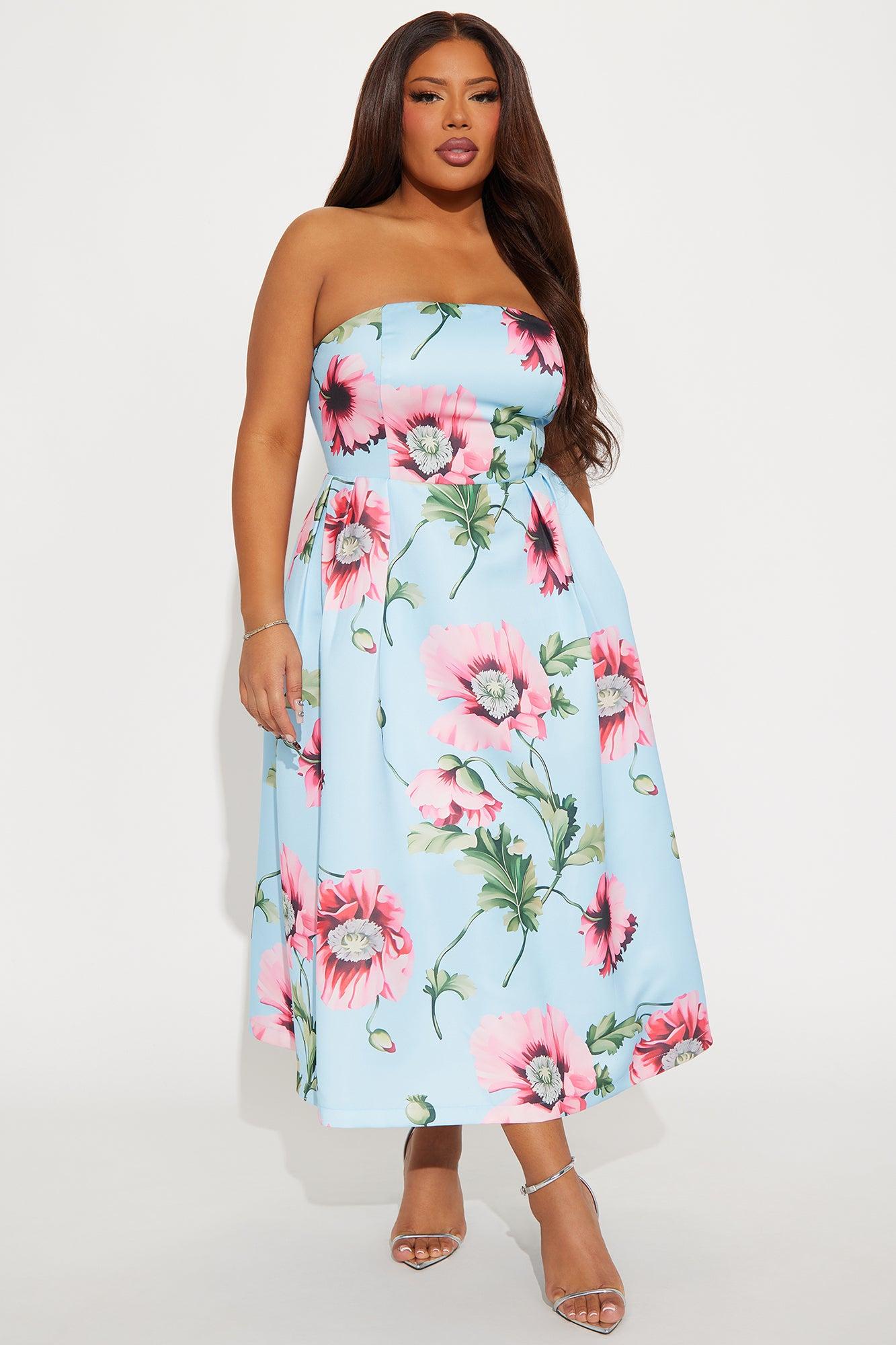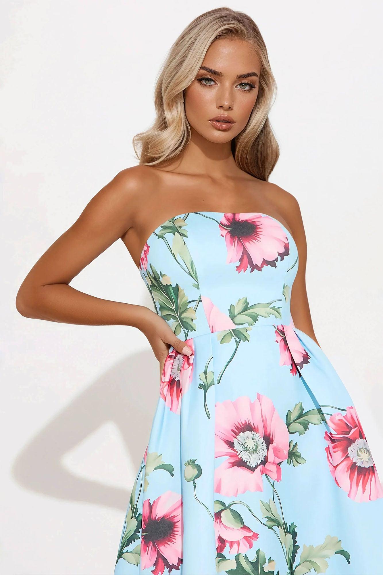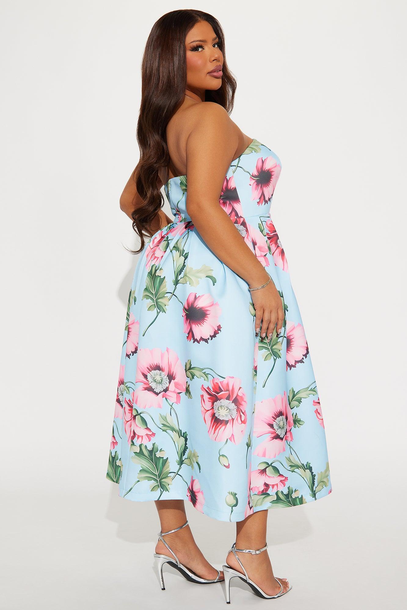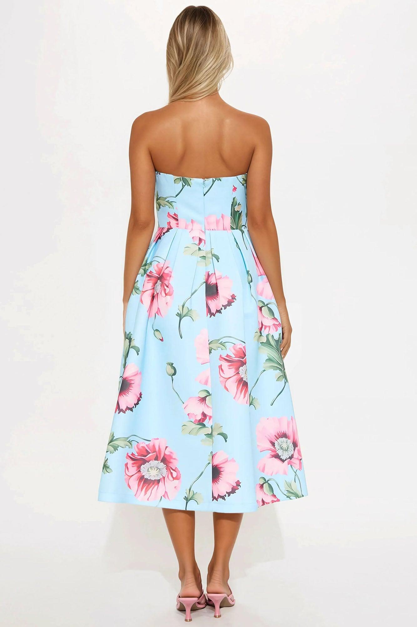 Frida Floral Satin Midi Dress - Blue/combo