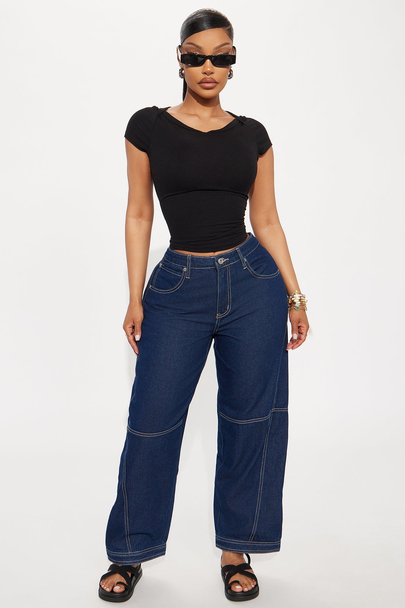 Frida Ribbed Boatneck Short Sleeve Top - Black Female