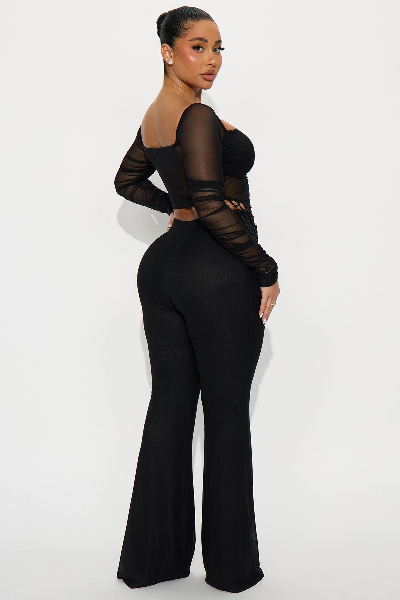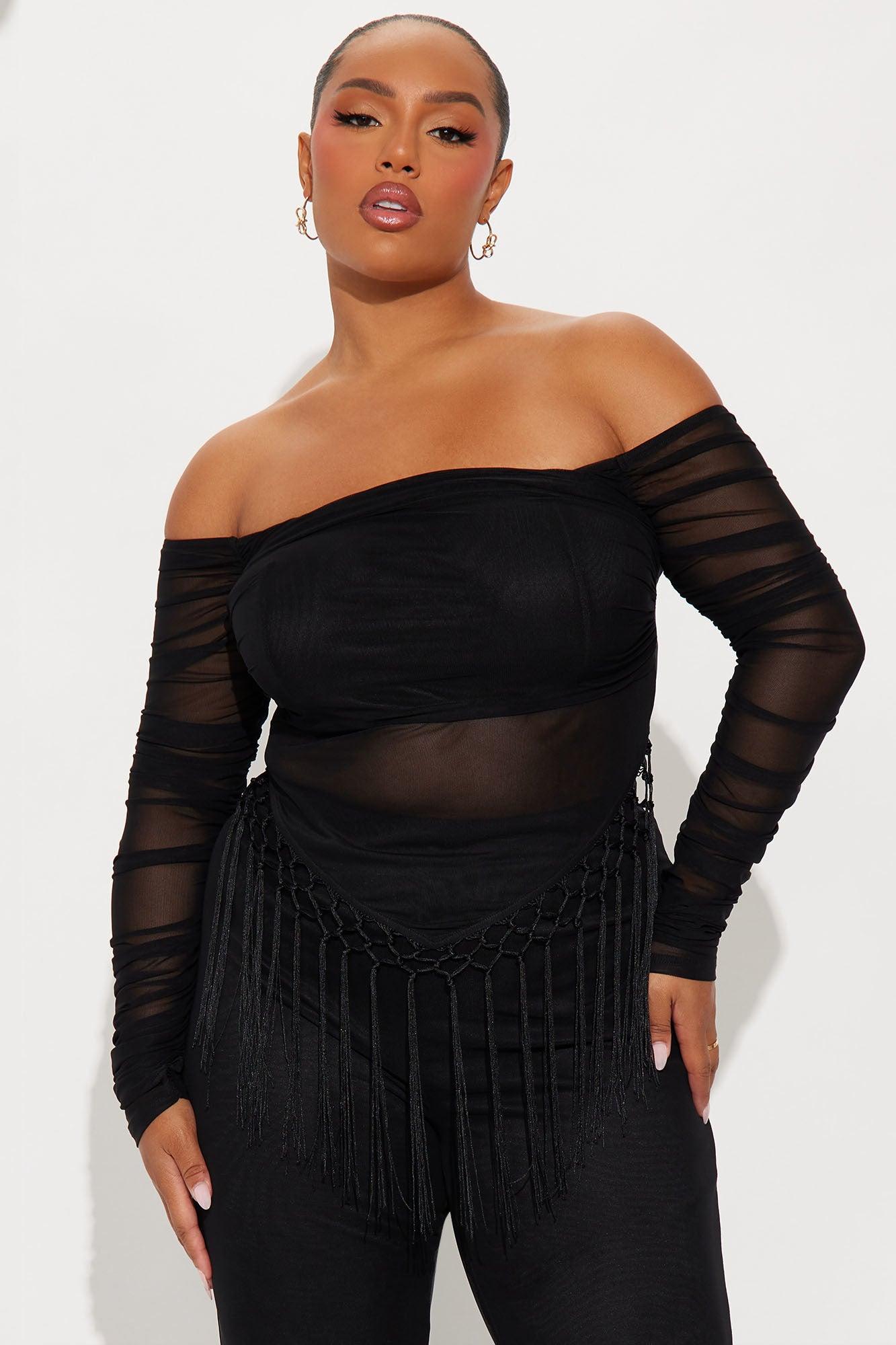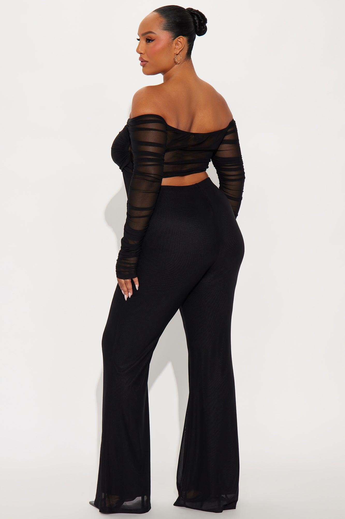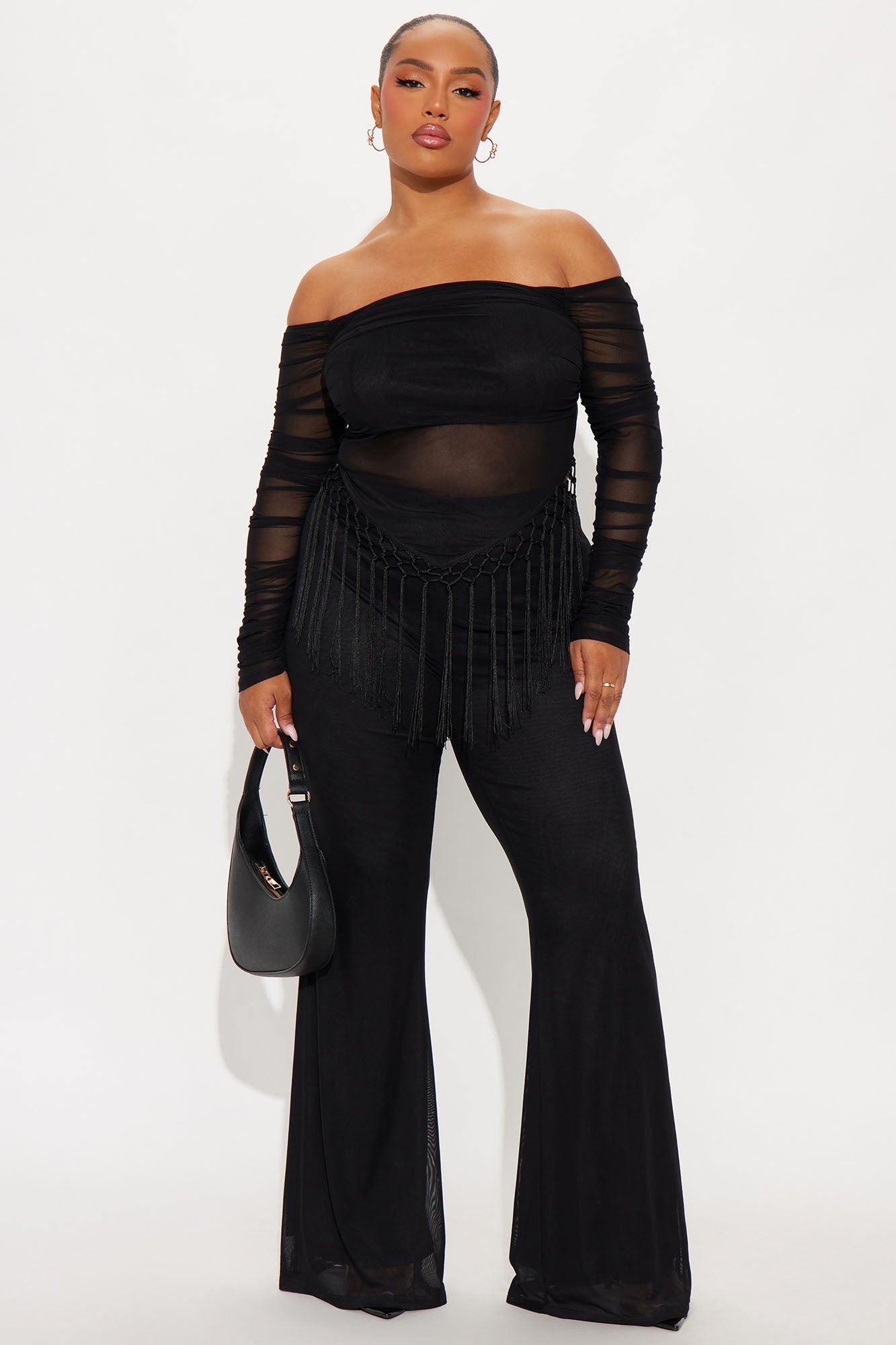 Fringe Desires Mesh Off Shoulder Pant Set - Black Female