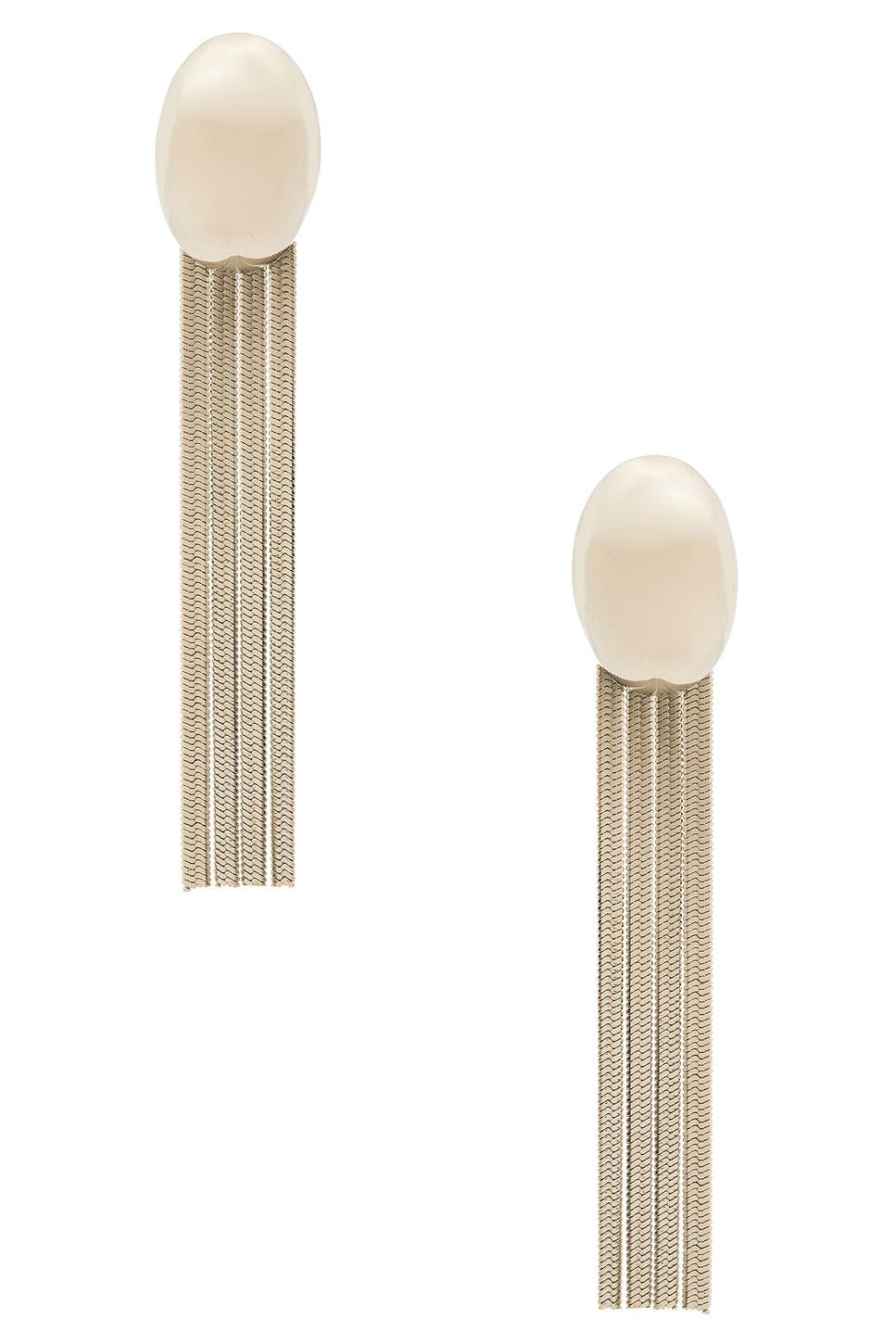 Silver-tone stainless steel earrings. Post-back closure. Measures approx 3.5" dangling. Made in China. Revolve Style No. PETM-WL809. Manufacturer Style No. Fringe Dome Earrings.