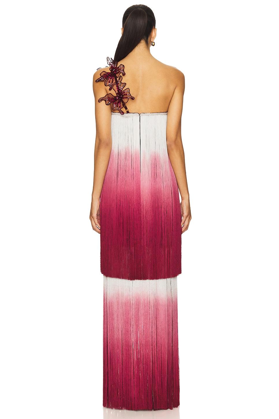 Self: 100% polyamideFringe: 100% viscose. Dry clean only. Partially lined. Hidden back zipper closure. One shoulder styling with tonal crystal embellished strap. Tonal bead embellishments along neckline. Midweight macramé fabric. Made in India. Revolve Style No. PBTO-WD355. Manufacturer Style No. VEL32043.