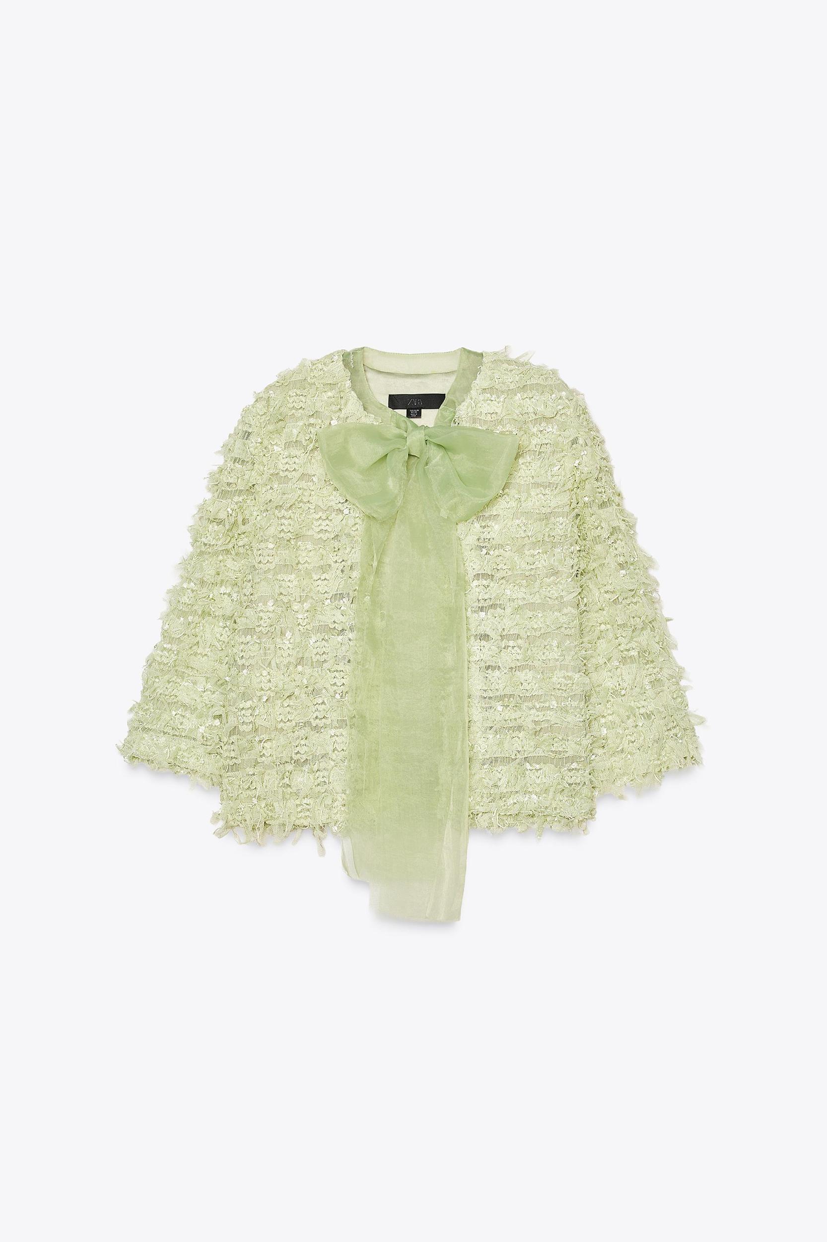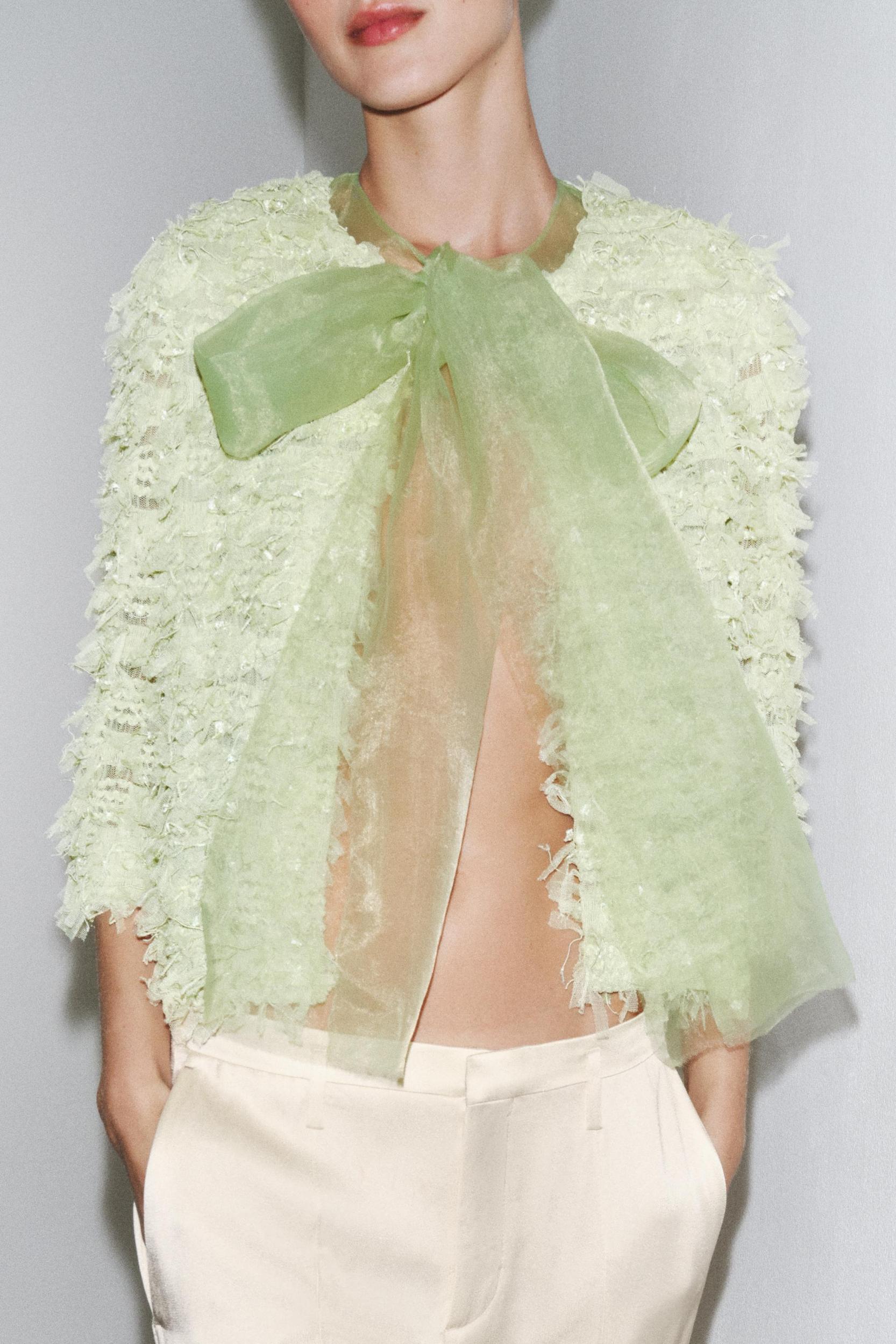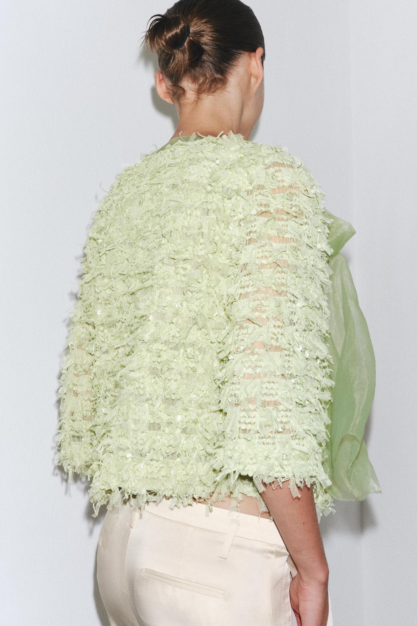 FRINGED ORGANZA TIE CARDIGAN