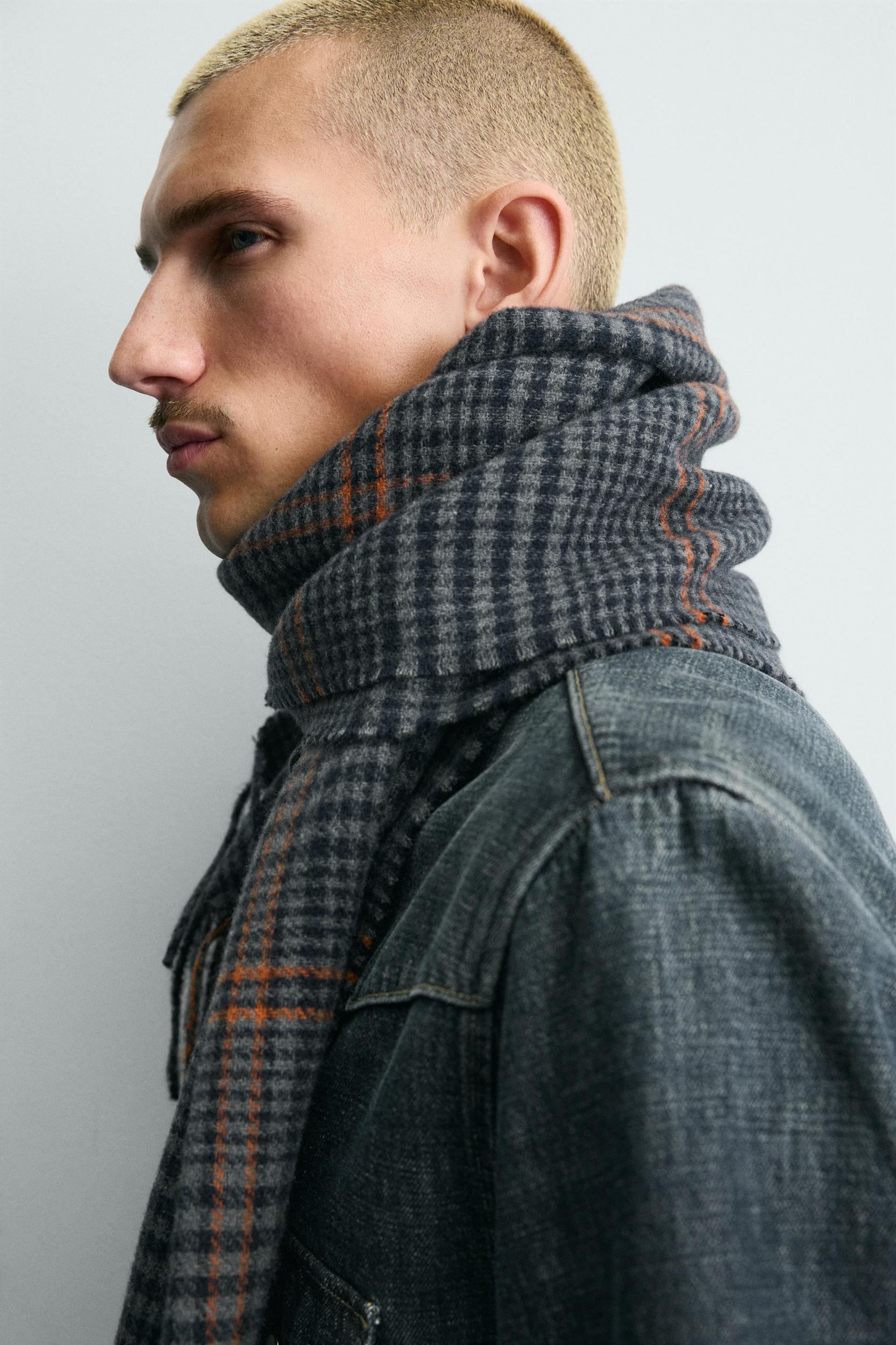 Mens Fringe-Trimmed Wool Scarf