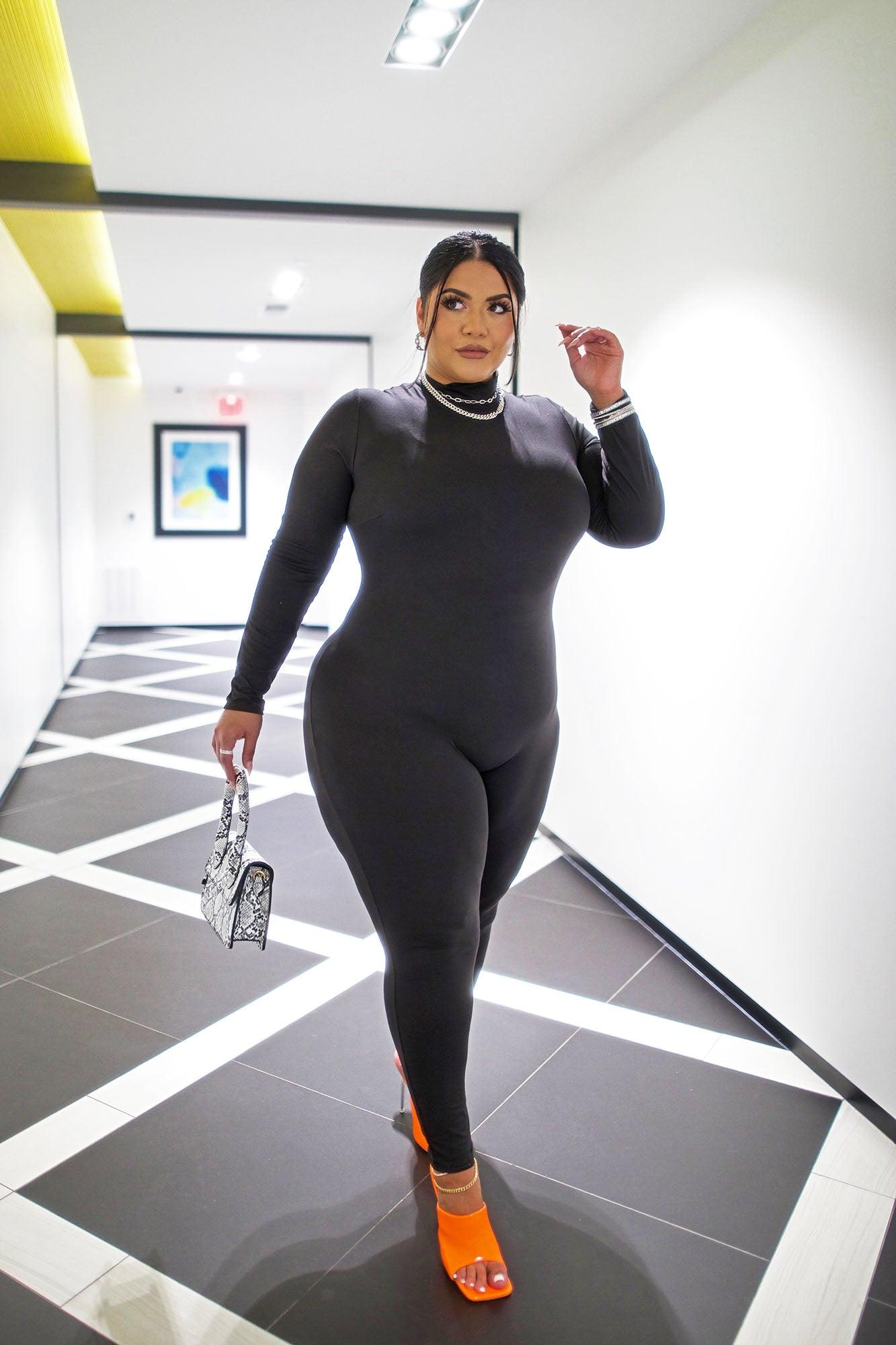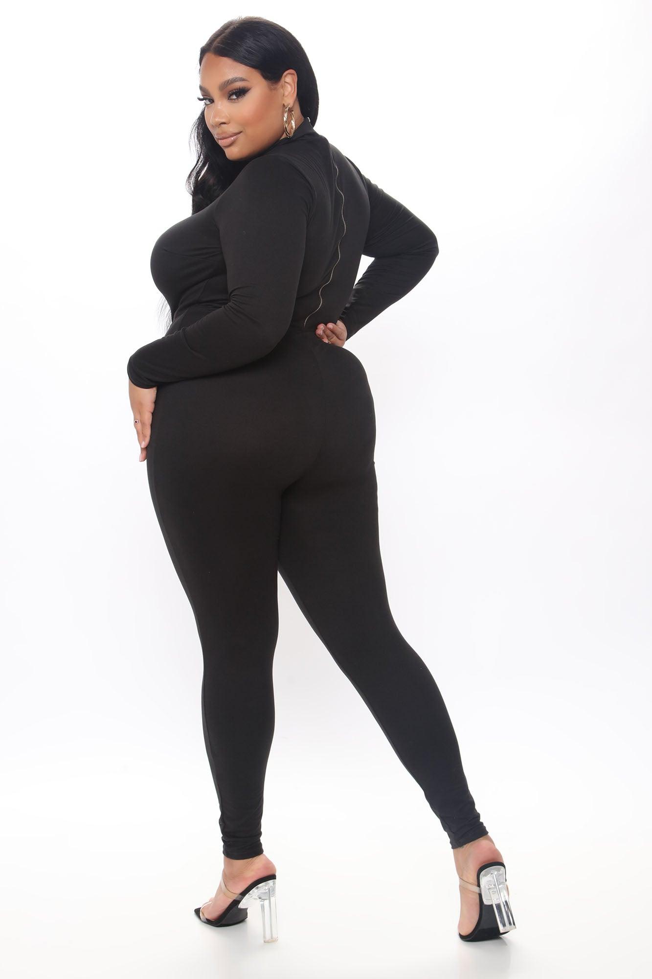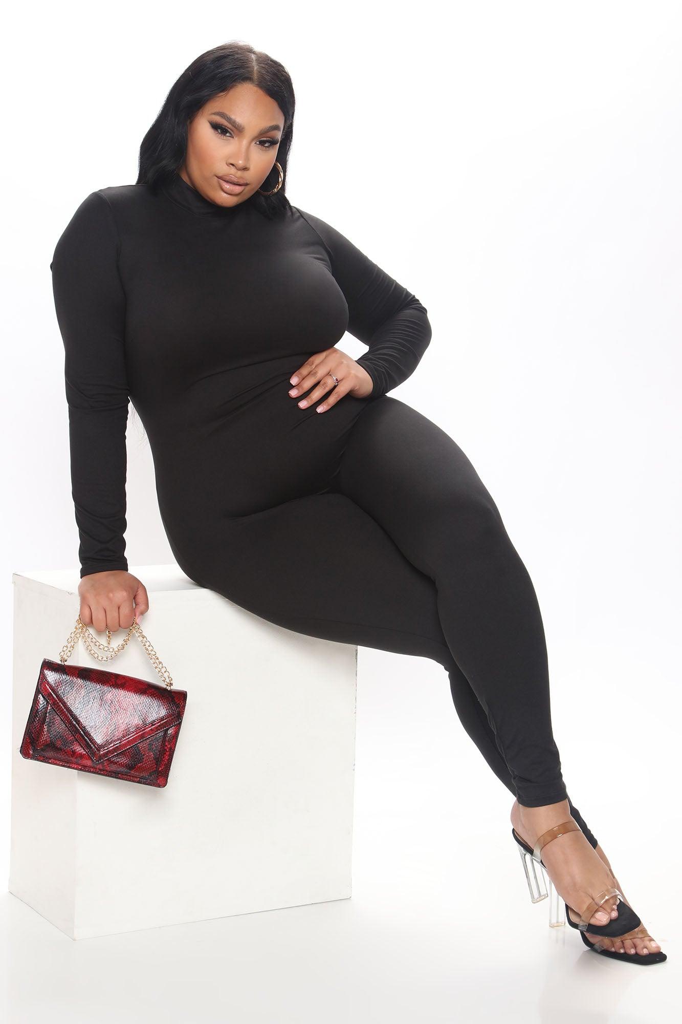 Available In Black And Brown. Mock Neckline Long Sleeve Back Zipper Skinny Leg 96% Polyester 4% Spandex Imported California Proposition 65WARNING: Cancer and Reproductive Harm - www.P65Warnings.ca.gov.