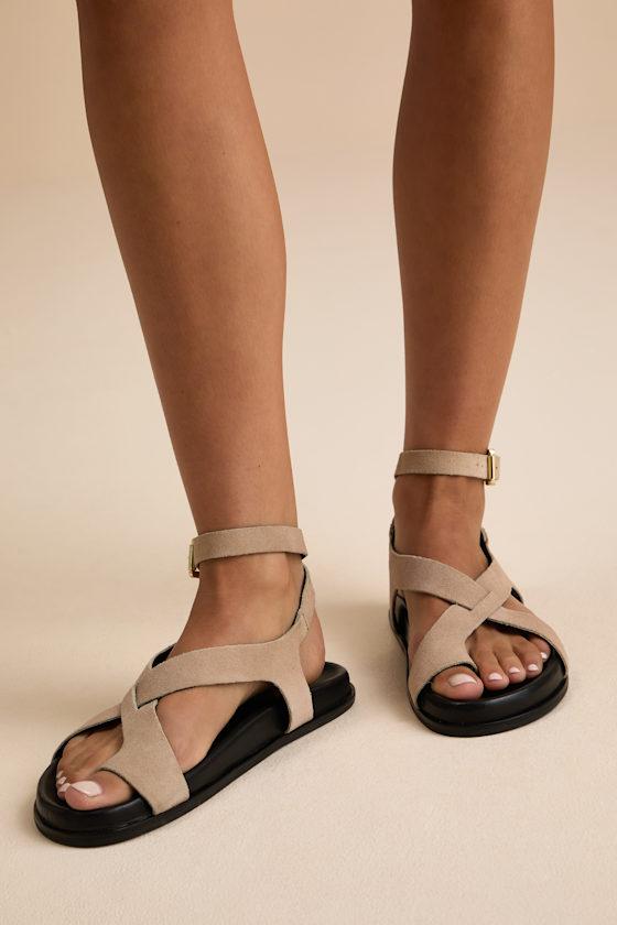For the fashionistas who love an effortless summer, these Boho-cute sandals by Seychelles feature a genuine suede leather upper that's ready for strolling. A sturdy toe loop and crisscrossing vamp straps top a round footbed, leading to an adjustable, wrapping ankle strap that secures with a shiny gold buckle. Available in whole sizes only.