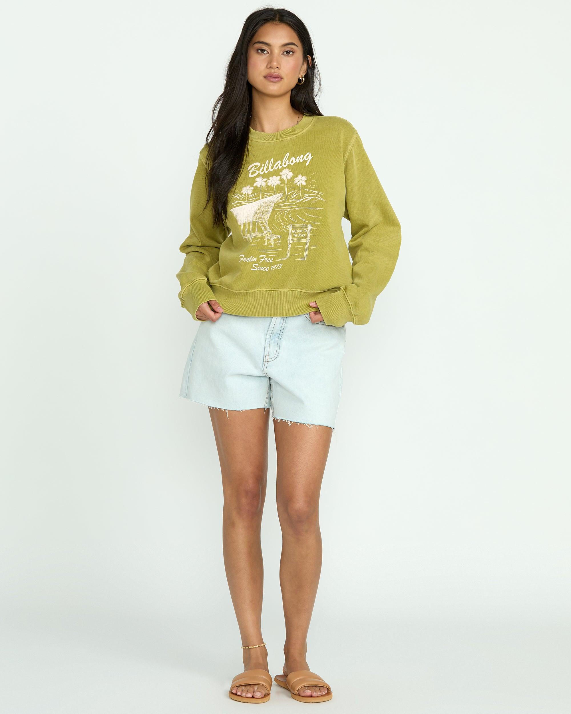 Our From Paradise Crewneck Sweatshirt blends 80% cotton, 20% polyester fleece into a pigment-dyed pullover with relaxed vibes and vintage fading. Screenprint details round out this cozy, casual crewneck. Features 80% Cotton 20% Polyester Fleece, Pigment Dyed Pullover Sweatshirt Relaxed fit Screenprint