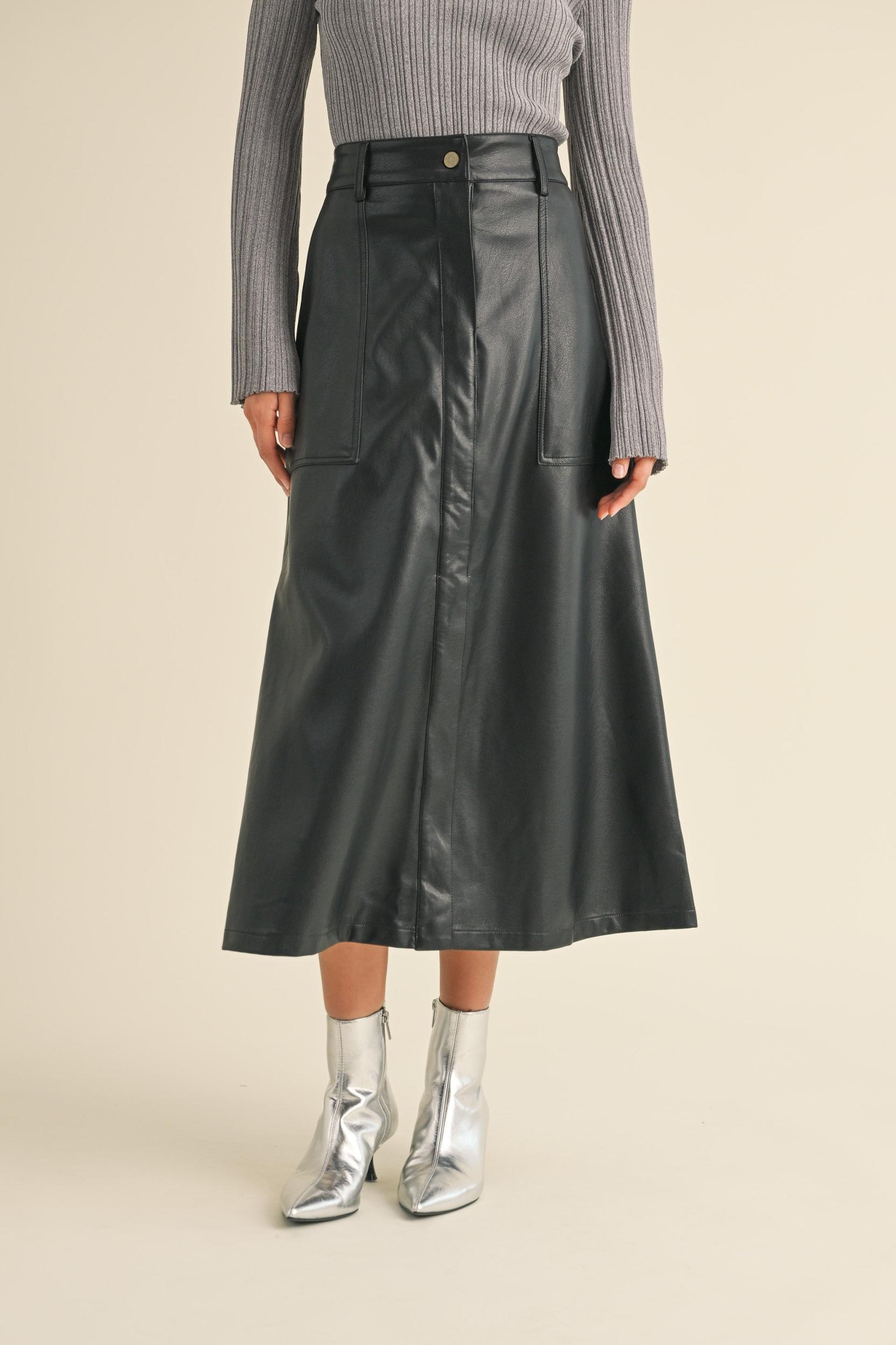 🖤 Add a daring touch to your wardrobe with the Front Slit A-Line Maxi Pleather Skirt!