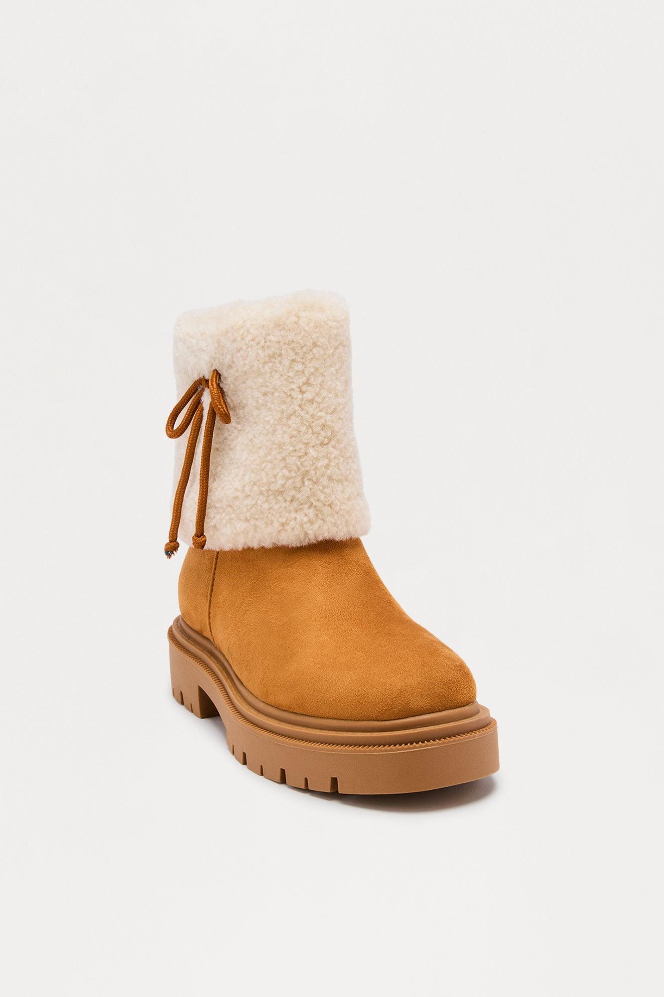 Available In Chestnut. Booties Fur Trim Bow Detail Round Toe 2" Low Block Heel Imported