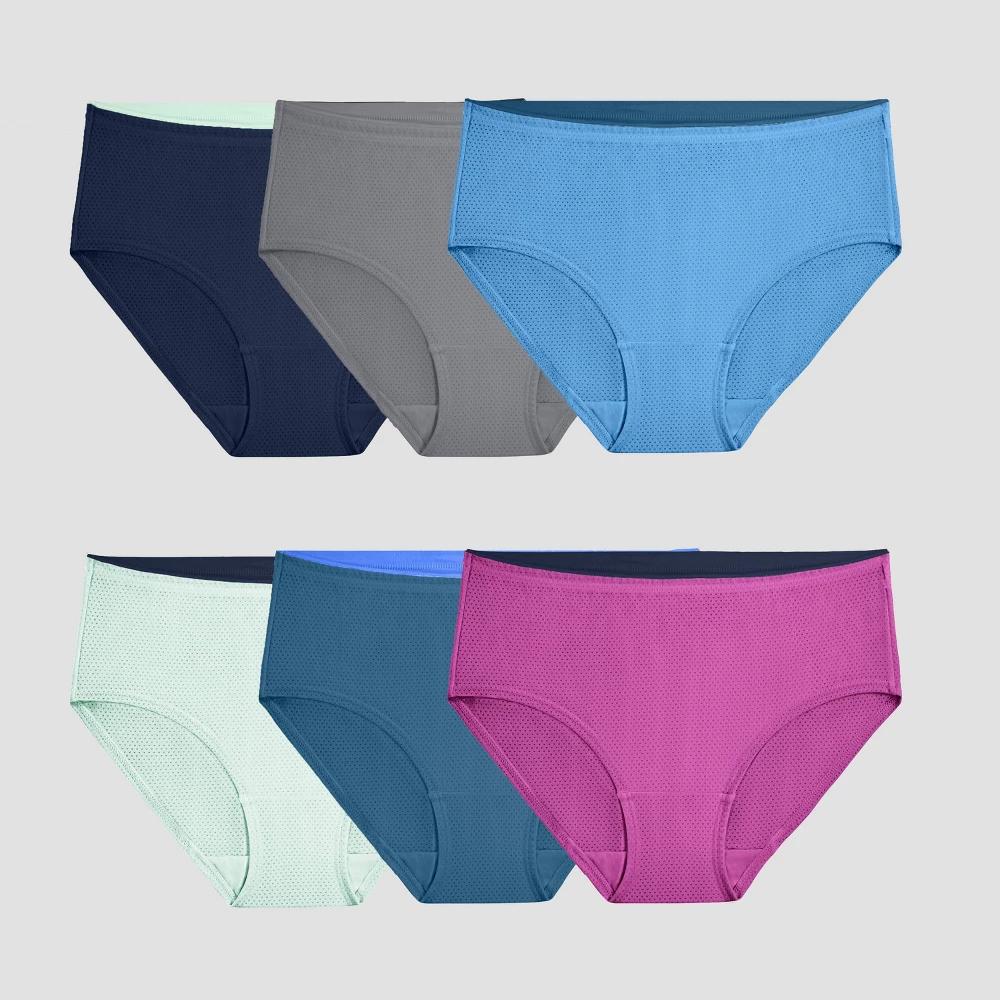 Fruit of the Loom Breathable micro-mesh low rise briefs are just what you need to help you stay cool and fresh all day long. These panties feature Tri-Cool Technology, which gives you several benefits including breathable mesh fabric, moisture wicking, and a cooling waistband. As always, our panties are tag-free and made with a 100% cotton liner for extra softness. Fruit of the Loom offers a Best Fit Gurantee on all of our products. We are proud of the time and attention to detail we put into achieving the best fit on all styles, resulting in our best consumer-driven designs.