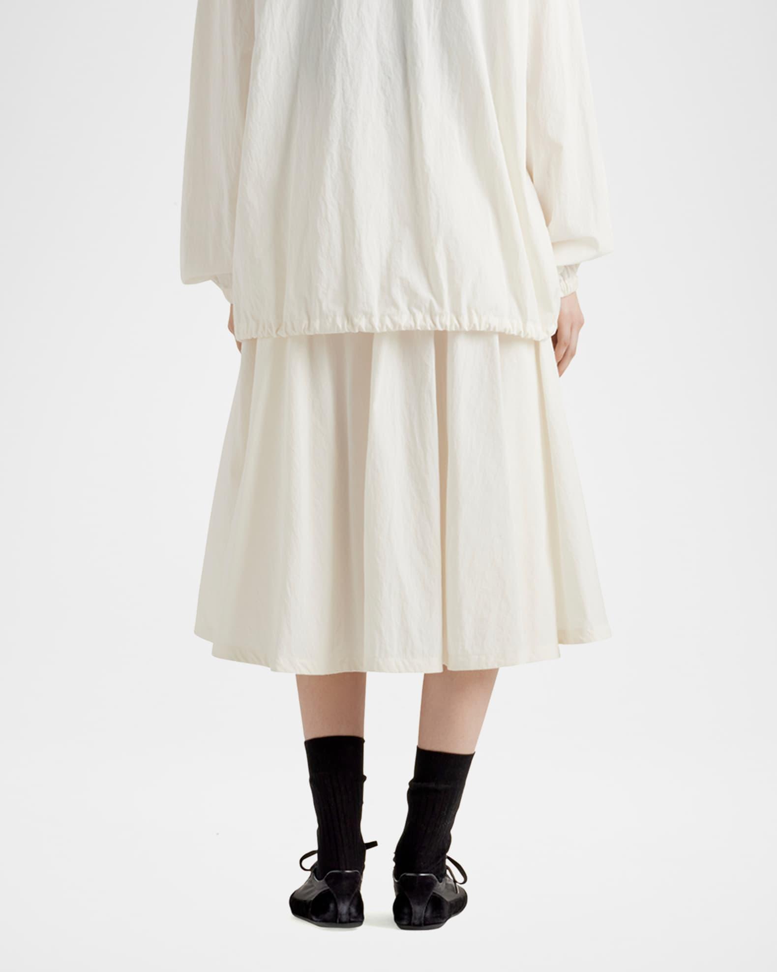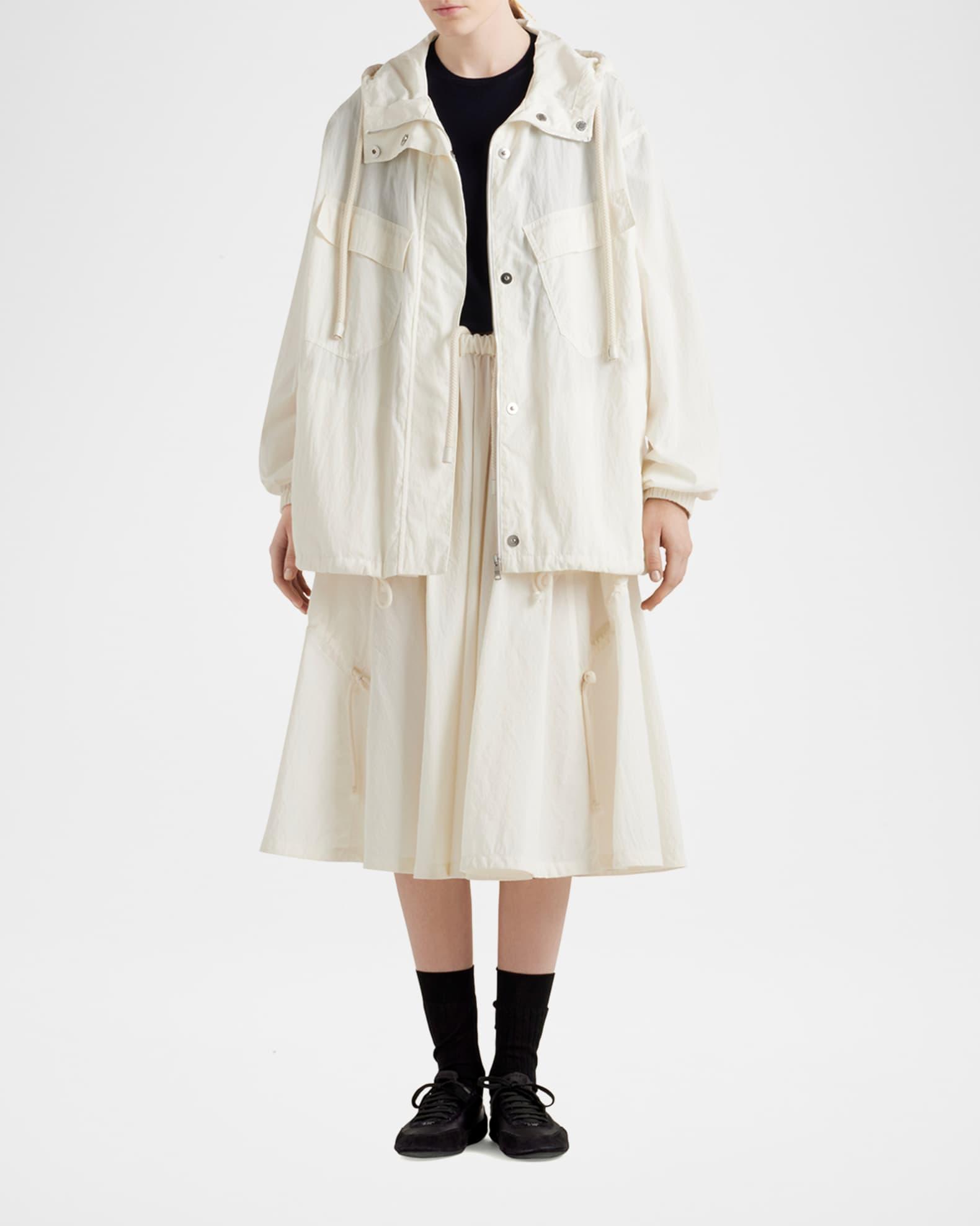 Prada lightweight skirt in a cargo style features an elasticated waistband and drawstring accents on the side Sits low on the waist Hem falls below the knee Adjustable waist drawstring for a customizable fit Oversized flap pockets; side pockets Circle-cut silhouette Pull-on style Cotton/nylon/polyamide Dry clean, professional cleaning recommended Imported
